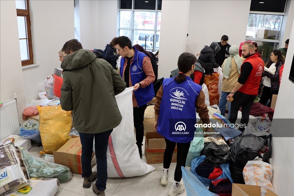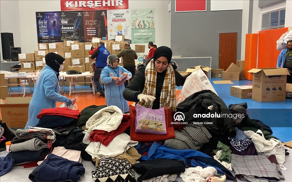 Nevşehir, Kırşehir, Kayseri ve Kırıkkale'de, Kahramanmaraş'taki depremzedeler için yardım kampanyaları başlatıldı. Kırşehir Gençlik Merkezince başlatılan yardım kampanyası kapsamında toplanan malzemeler de gençlik liderleri ile gönüllü gençler tarafından paketleniyor. ( Serkan Güner - Anadolu Ajansı )Serkan Güner