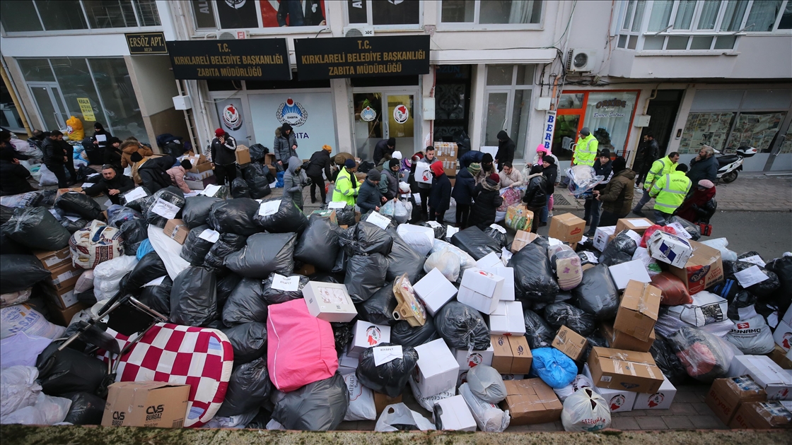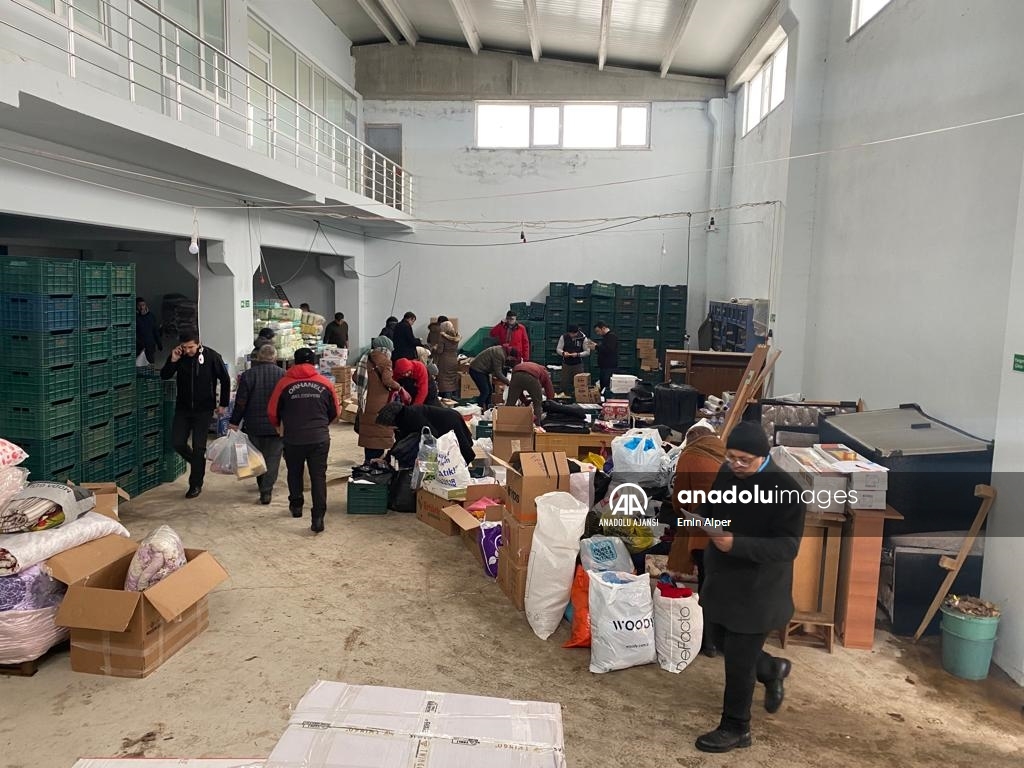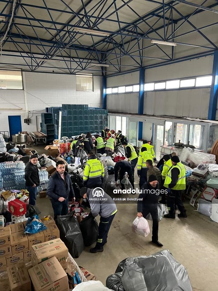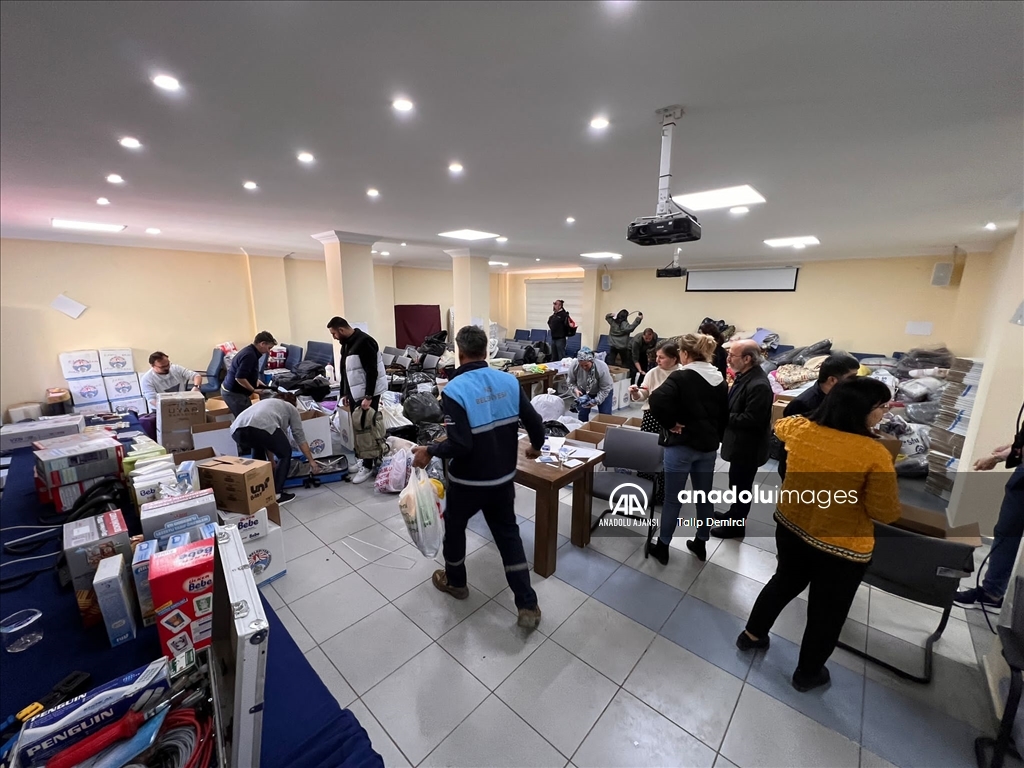 Balıkesir'in Sındırgı ilçesinde, Kahramanmaraş merkezli ve 10 ili etkileyen depremlerden etkilenen deprem bölgesine yardım seferberliği başlatıldı. ( Murat Seyman - Anadolu Ajansı )Murat Seyman