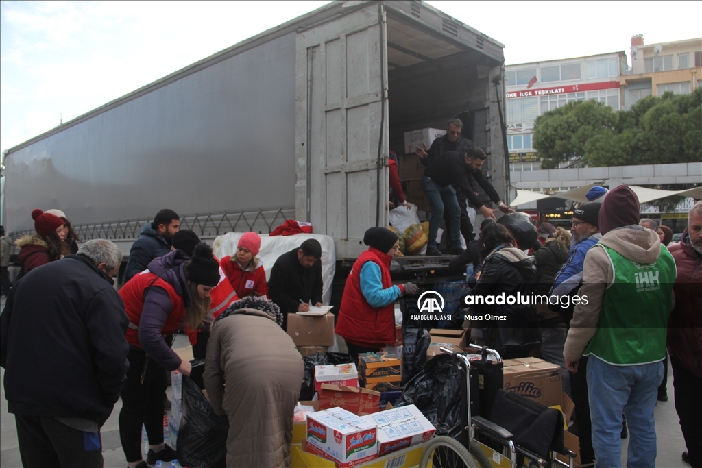 Aydın'ın Söke ilçesinde merkez üssü Kahramanmaraş'ın Pazarcık ilçesi olan ve 10 ili etkileyen depremle ilgili yardım kampanyası başlatıldı. ( Musa Ölmez - Anadolu Ajansı )Musa Ölmez