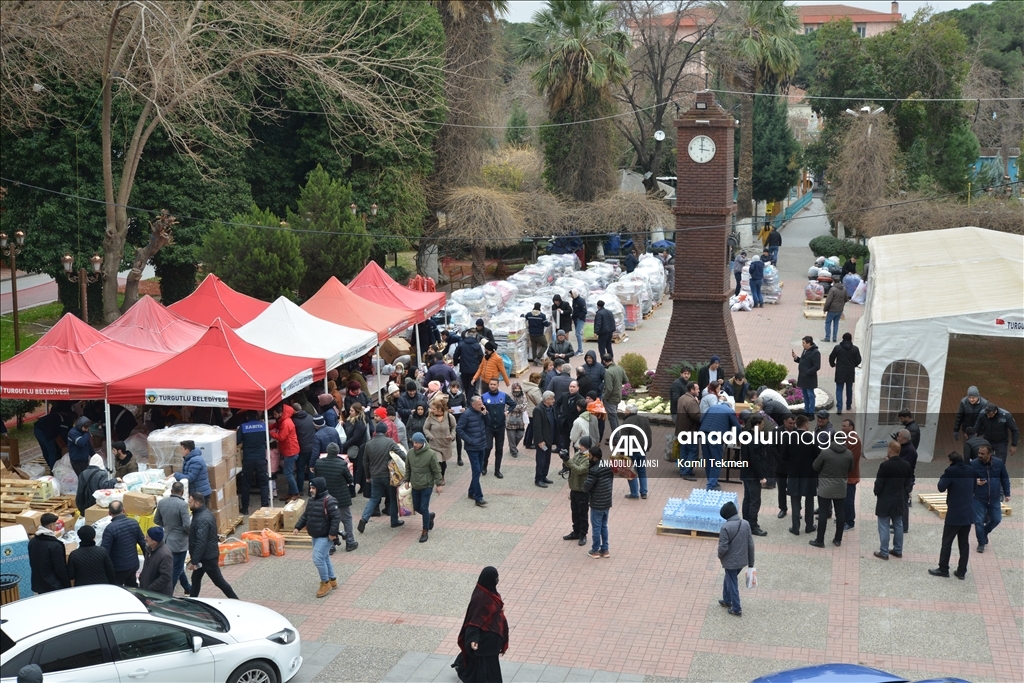 Orhaneli Kaymakamlığı ve Orhaneli Belediyesi tarafından depremzedeler için başlatılan kampanyaya ilgi yoğun oldu. ( Emin Alper - Anadolu Ajansı )Emin Alper