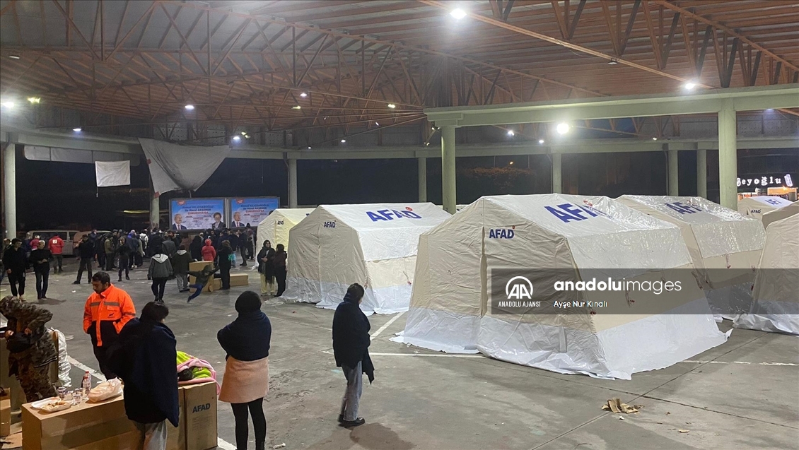 Kahramanmaraş merkezli, 10 ili etkileyen 7,7 ve 7,6 büyüklüğündeki depremlerin ardından Adana'nın merkez Çukurova ilçesinde AFAD ekiplerince kurulan çadırlara depremzedeler yerleştirilmeye başlandı. ( Ayşe Nur Kınalı - Anadolu Ajansı )Ayşe Nur Kınalı