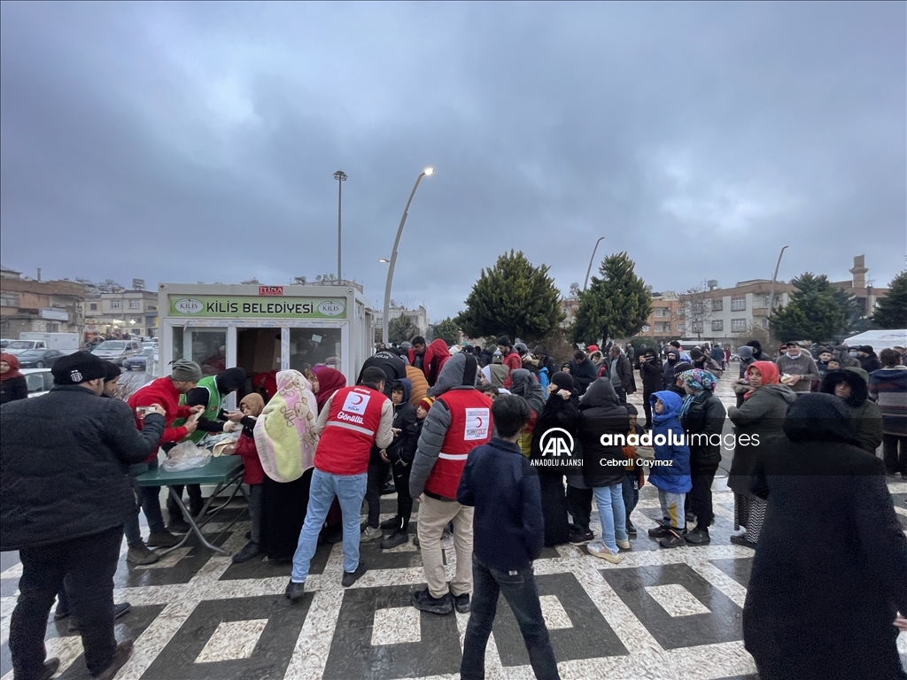 Kahramanmaraş'ın Pazarcık ilçesi merkezli 7,7 büyüklüğündeki depremden etkilenen Kilis'teki depremzedelere, 20 bin kişilik çorba ikramı yapıldı. ( Cebrail Caymaz - Anadolu Ajansı )Cebrail Caymaz