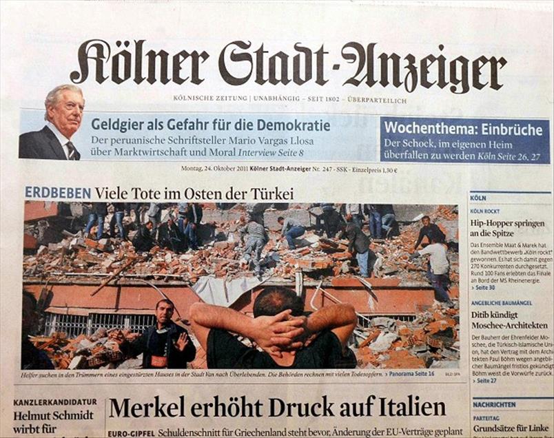 ALMAN BASININDA ANADOLU AJANSI'NIN DEPREM FOTOGRAFLARI GENIS YER BULDU. KOLNER STADT ANZEIGER GAZETESI DE DEPREM HABERINI MANSETINE TASIDI. (ANADOLU AJANSI) (20111024)