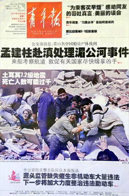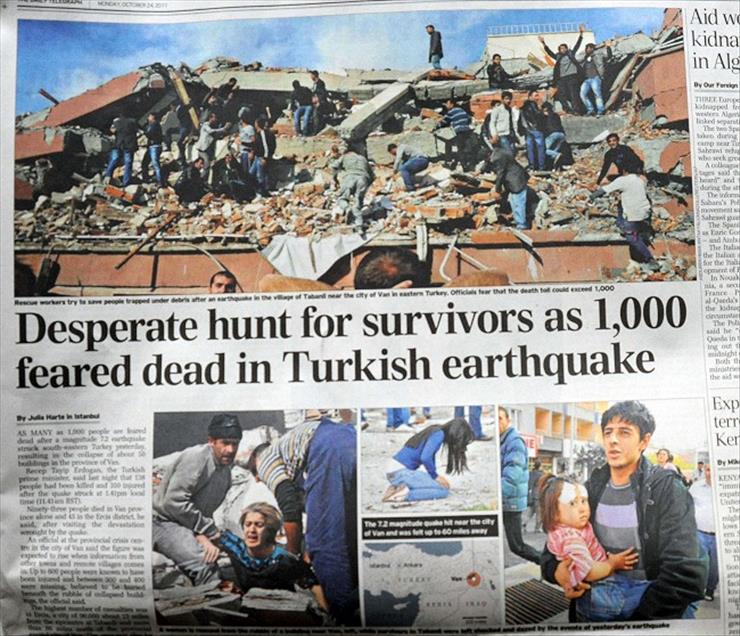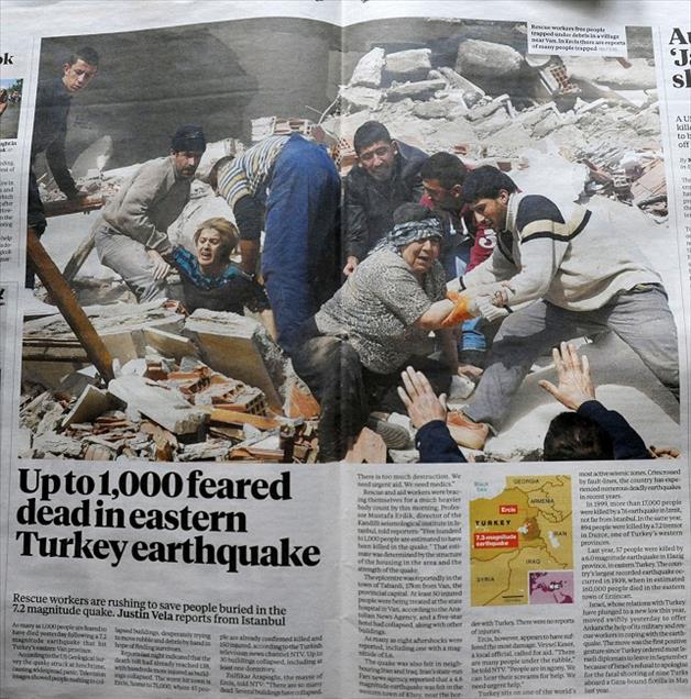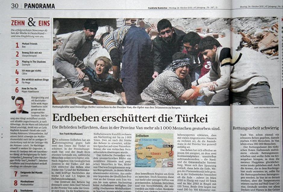 ALMAN BASININDA ANADOLU AJANSI'NIN DEPREM FOTOGRAFLARI GENIS YER BULDU. (ANADOLU AJANSI) (20111024)