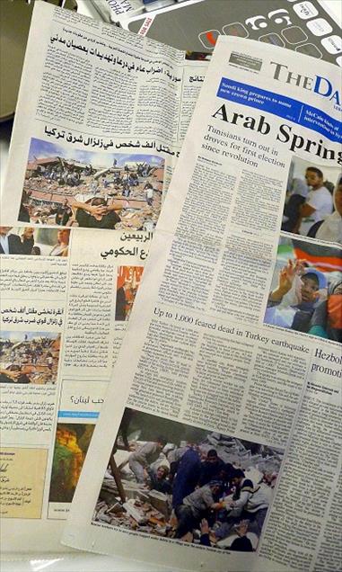 LUBNAN BASININDA ANADOLU AJANSI'NIN DEPREM FOTOGRAFLARI GENIS YER BULDU. (ANADOLU AJANSI-EYUP COSKUN) (20111024)EYUP COSKUN