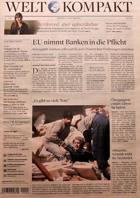 ALMAN BASININDA ANADOLU AJANSI'NIN DEPREM FOTOGRAFLARI GENIS YER BULDU. WELT KOMPAKT GAZETESI DE DEPREM HABERINI MANSETINE TASIDI. (ANADOLU AJANSI) (20111024)