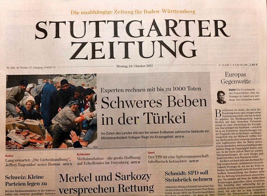 ALMAN BASININDA ANADOLU AJANSI'NIN DEPREM FOTOGRAFLARI GENIS YER BULDU. (ANADOLU AJANSI - CUNEYT KARADAG) (20111024)CUNEYT KARADAG