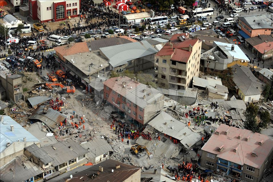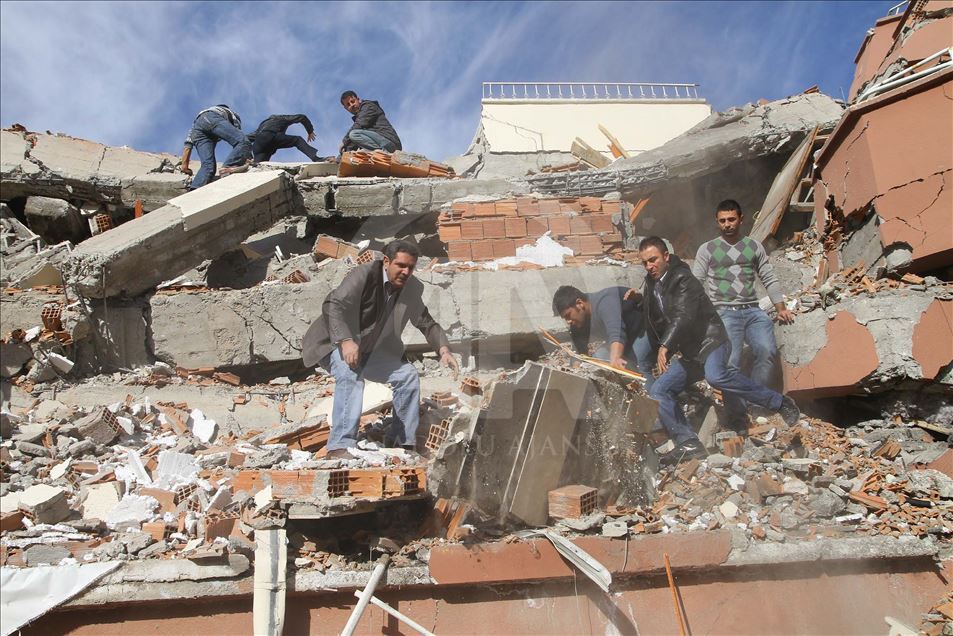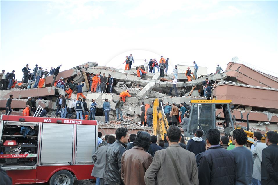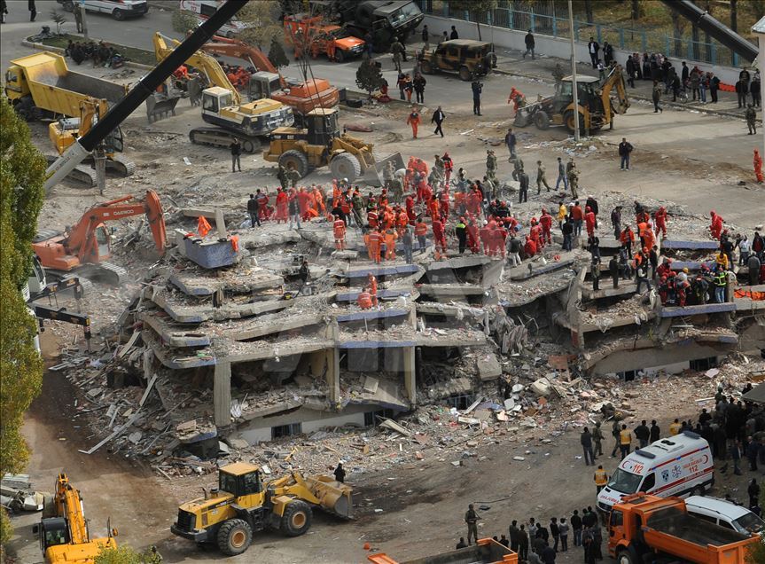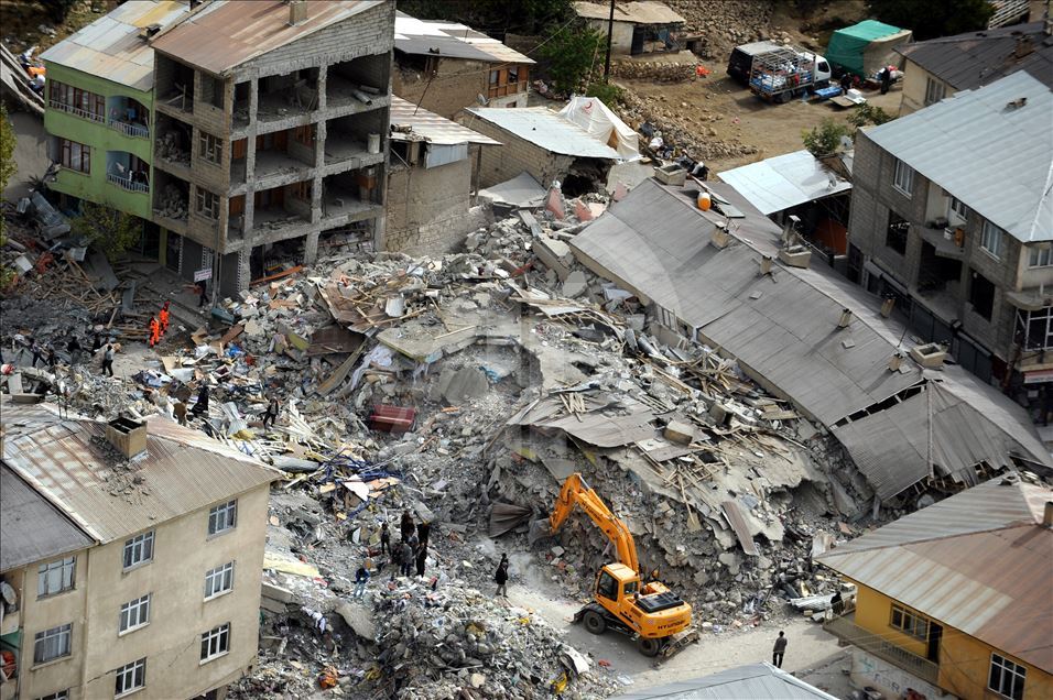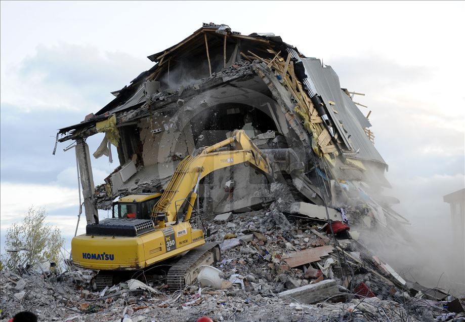 Van'da 23 Ekim 2011'de 604 kişinin ölümü, binlerce binanın ağır hasar görmesiyle sonuçlanan 7,2 büyüklüğündeki depremin aradından 8 yıl geçti. 29 Ekim 2011'de depremin ardından Van'ın Erciş İlçesi'nde arama kurtarma faliyetinin bittiği enkazlarda yıkım çalışmaları başladı. (Arşiv)