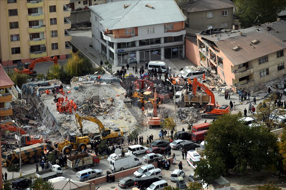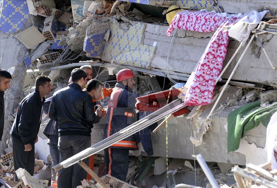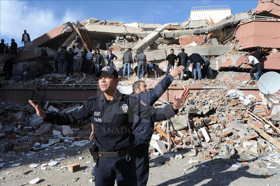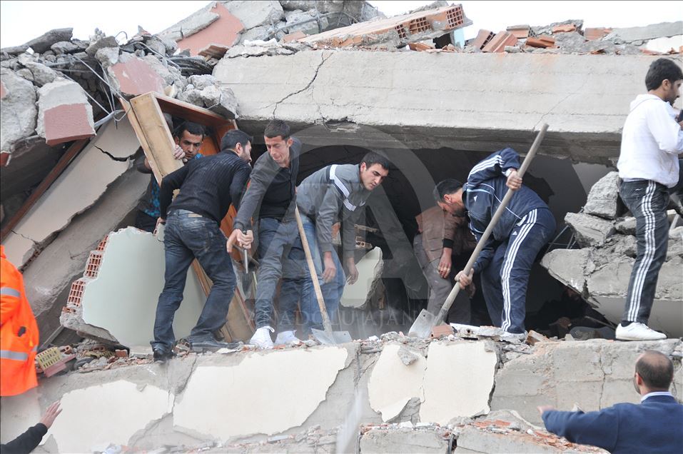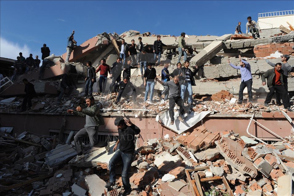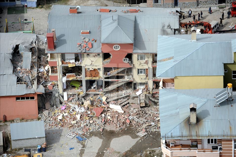 Van'da 23 Ekim 2011'de 604 kişinin ölümü, binlerce binanın ağır hasar görmesiyle sonuçlanan 7,2 büyüklüğündeki depremin aradından 8 yıl geçti. 29 Ekim 2011'de depremin ardından Van'ın Erciş İlçesi'nde arama kurtarma faliyetinin bittiği enkazlarda yıkım çalışmaları başladı. (Arşiv)