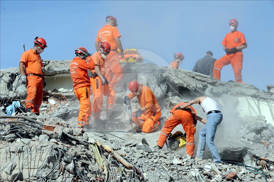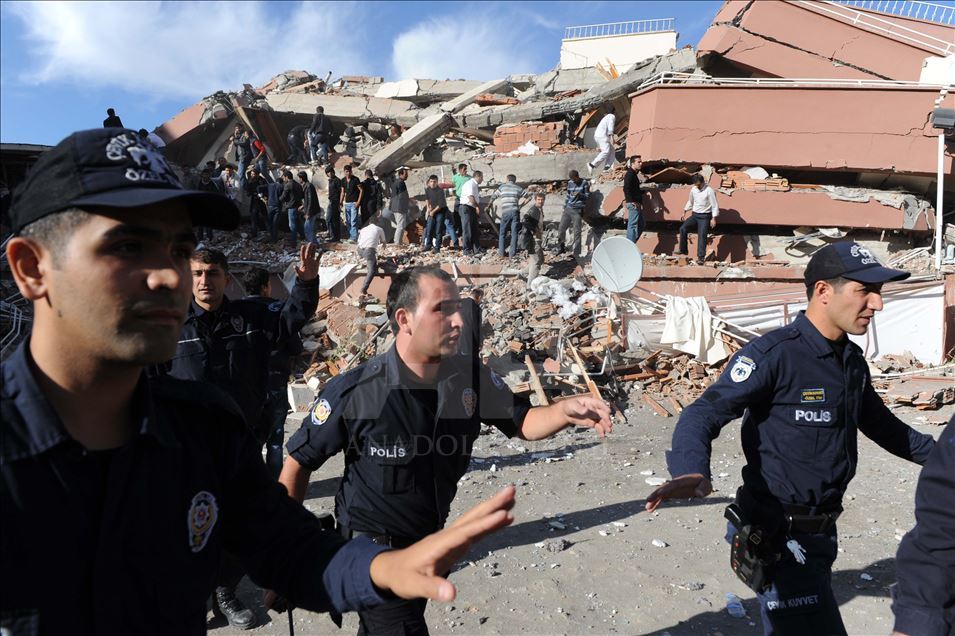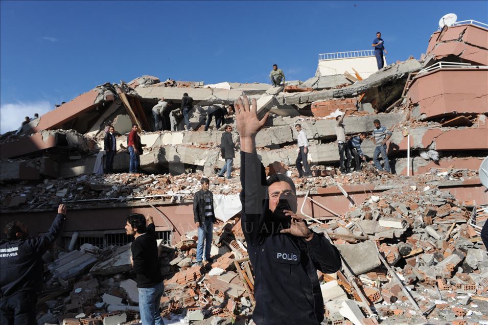 Van'da 23 Ekim 2011'de 604 kişinin ölümü, binlerce binanın ağır hasar görmesiyle sonuçlanan 7,2 büyüklüğündeki depremin aradından 8 yıl geçti. 24 Ekim 2011'de depremin ardından Kazım Karabekir caddesinde arama kurtarma çalışmaları sürüyor. (Arşiv)