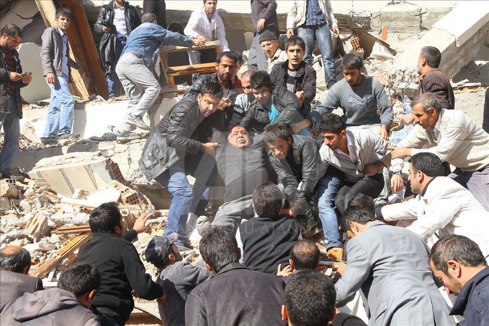 Van'da 23 Ekim 2011'de 604 kişinin ölümü, binlerce binanın ağır hasar görmesiyle sonuçlanan 7,2 büyüklüğündeki depremin aradından 8 yıl geçti. 24 Ekim 2011'de depremde ciddi hasar gören Van'ın Erciş İlçesi'nde arama kurtarma çalışmaları aralıksız sürüyor. (Arşiv)