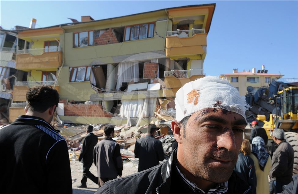 Van'da 23 Ekim 2011'de 604 kişinin ölümü, binlerce binanın ağır hasar görmesiyle sonuçlanan 7,2 büyüklüğündeki depremin aradından 8 yıl geçti. 24 Ekim 2011'de depremde ciddi hasar gören Van'ın Erciş İlçesi'nde arama kurtarma çalışmaları aralıksız sürerken, yaralı depremzedeler de yakınlarını arıyor. (Arşiv)