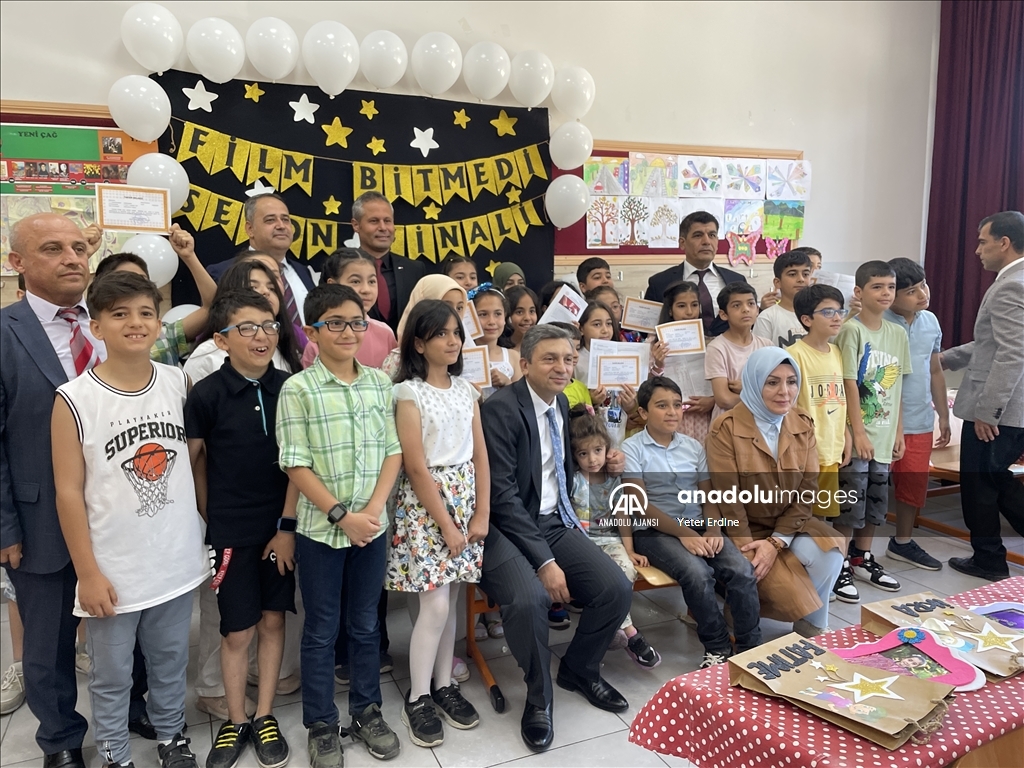 Kahramanmaraş merkezli 6 Şubat'taki depremlerin etkilediği Malatya'daki öğrenciler karnelerini aldı. Diniye Çalık İlkokulu'ndaki törene Malatya Valisi Hulusi Şahin (sol 5) ve İl Milli Eğitim Müdürü Hatice Özdemir (sağda) de katıldı. ( Yeter Erdine - Anadolu Ajansı )Yeter Erdine