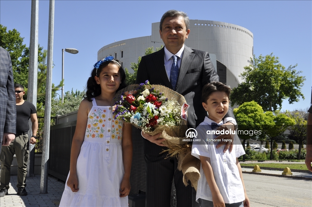 Kahramanmaraş merkezli 6 Şubat'taki depremlerin etkilediği Malatya'daki öğrenciler karnelerini aldı. Diniye Çalık İlkokulu'ndaki törene katılmak üzere okula gelen Malatya Valisi Hulusi Şahin'e öğrenciler çiçek takdim etti. ( Ramazan Taştaş - Anadolu Ajansı )Ramazan Taştaş