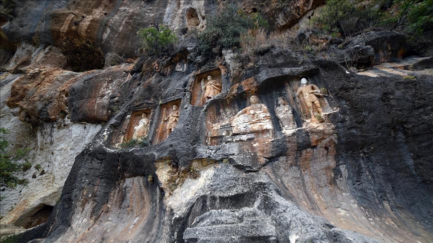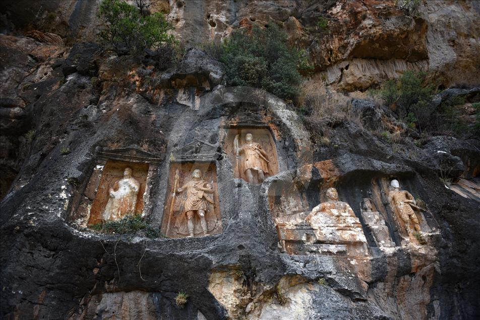 Mersin'in açık hava müzesi kimliğiyle öne çıkan Erdemli ilçesinde asırlar önce yapılan büyük boyuttaki kabartmalar, gizemi ve eşsiz görüntüsüyle görenleri şaşırtıyor.