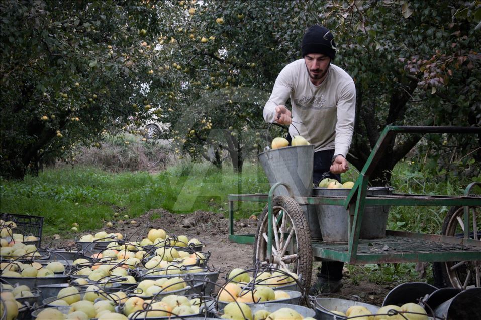 Türkiye'nin armut üretiminin yaklaşık yüzde 50'sinin yapıldığı Bursa'nın Gürsu ilçesinde yetiştirilen, lezzeti, dayanıklılığı ve iriliğiyle ilgi gören deveci cinsinde hasat çalışmaları tamamlandı.