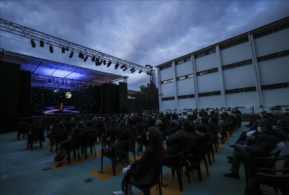 Yeni tip koronavirüs (Kovid-19) salgını nedeniyle temsillerine ara veren Devlet Tiyatroları, "Açık Hava Tiyatrosu Yaz Oyunları" ile seyircisiyle yeniden buluştu. Etkinliğin açılışı, İrfan Şahinbaş Sahnesi Macunköy Yerleşkesi'nde, Mustafa Kurt'un rejisörlüğünü üstlendiği, Ankara Devlet Tiyatrosunca sahneye konulan "Bizim Yunus" oyunuyla yapıldı. İzleyiciler, HES kodu kontrolününün ardından sahnenin olduğu alana alındı. ( Esra Hacioğlu - Anadolu Ajansı )Esra Hacioğlu