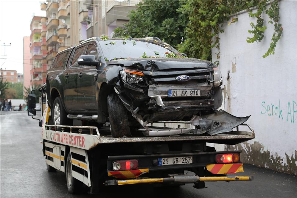 Diyarbakır'ın Kayapınar ilçesinde güvenlik güçlerince terör örgütü DAEŞ mensuplarının bulunduğu eve düzenlenen operasyonda çatışma çıktı. Halen devam eden çatışmada teröristlerin yerleştirdiği bombanın infilak etmesi sonucu 2 polis şehit oldu, 4 polis yaralandı. (Tuncay Bekar - Anadolu Ajansı)
