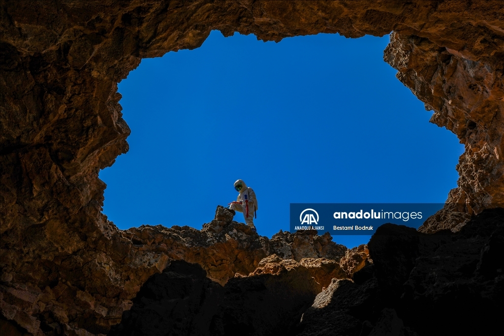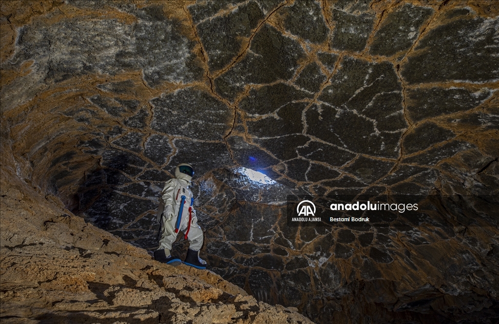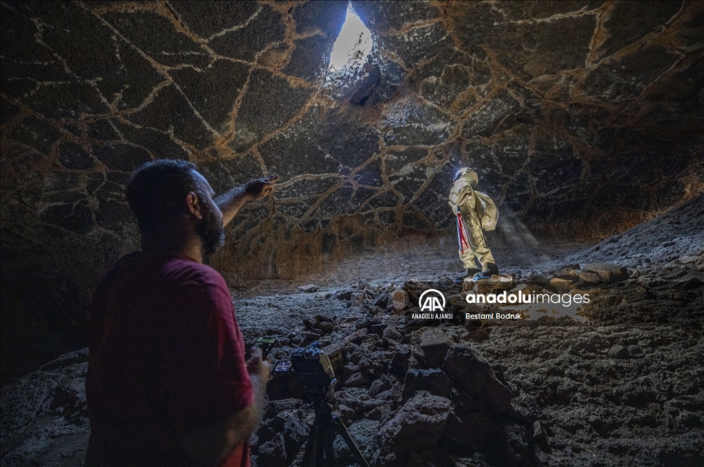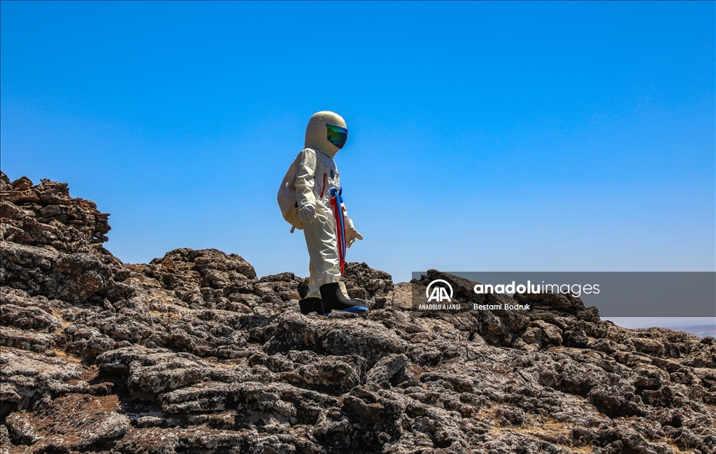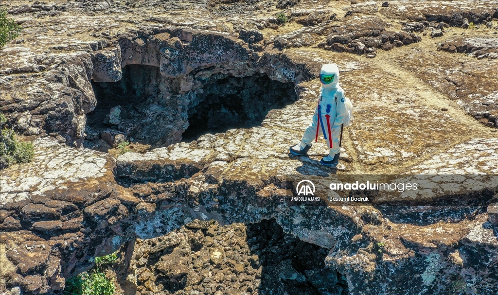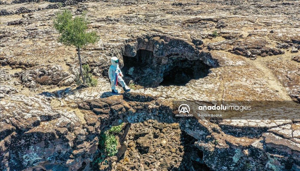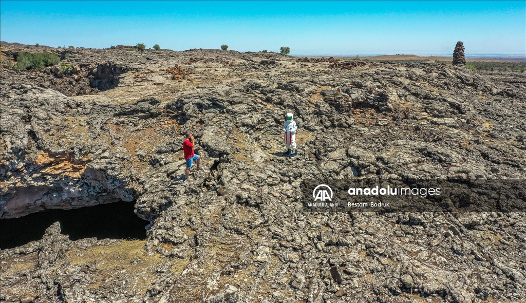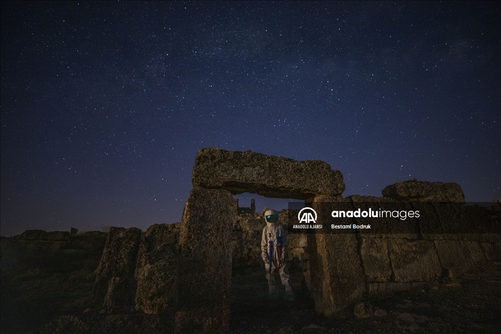 Fotoğraf sanatçısı Cengiz Kudat, Diyarbakır'ın tarihi ve kültürel değerlerini tanıtmak amacıyla açacağı sergi için 21 farklı mekanda astronot kıyafeti giyen modelle fotoğraf çekimleri gerçekleştiriyor.