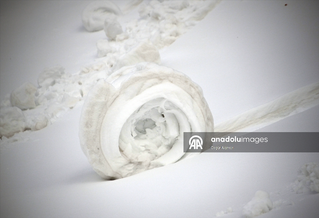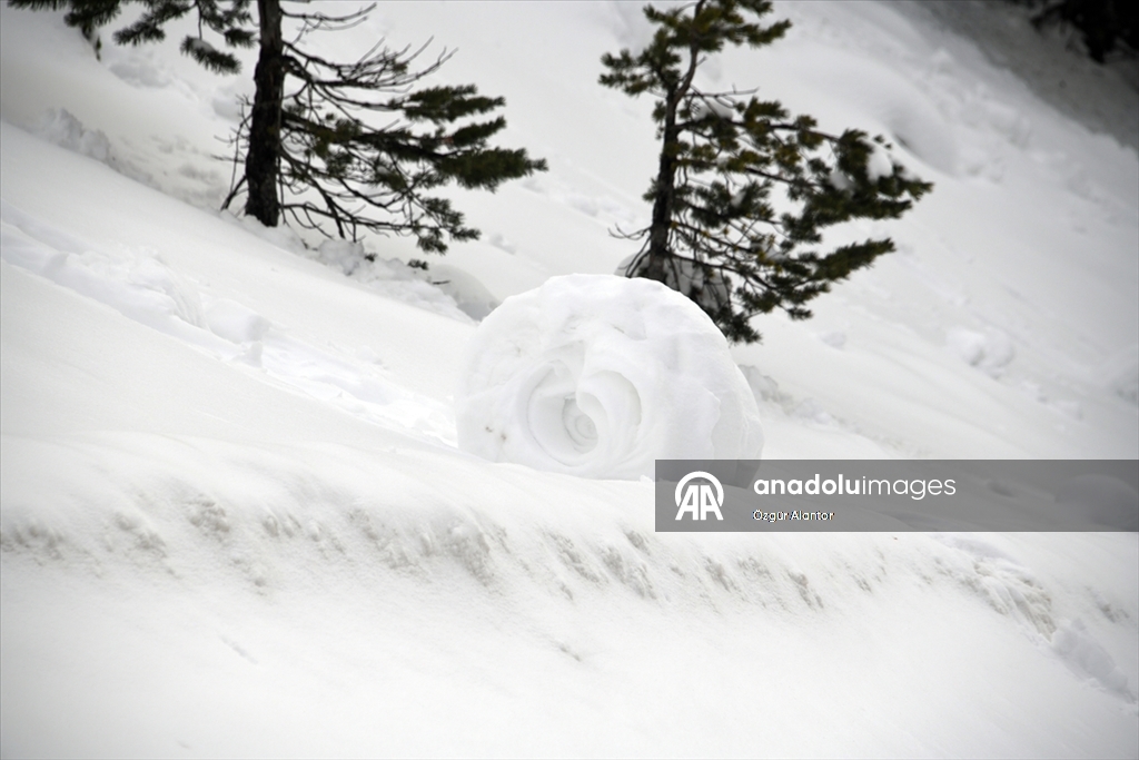 Ender rastlanan bir doğa olayı olan kar ruloları Ilgaz Dağı'nda görüldü.