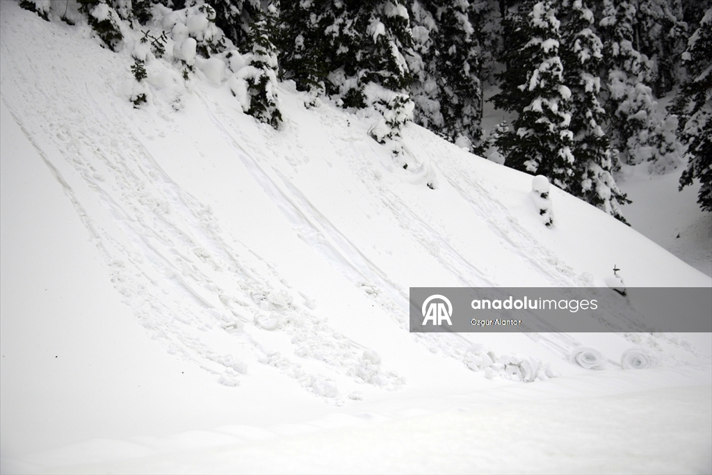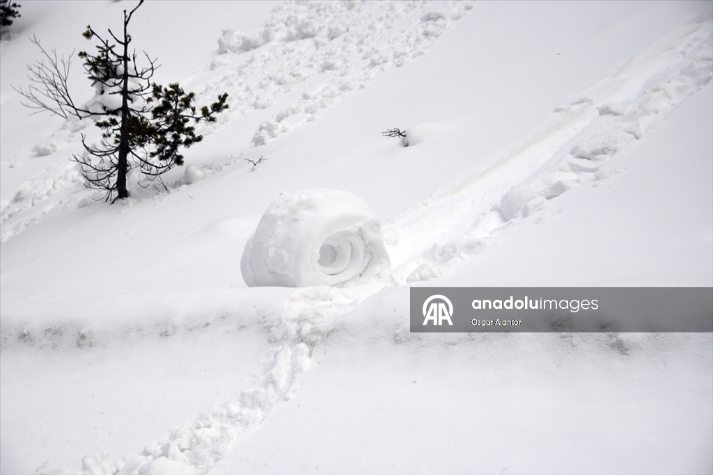 Doğada ender oluşan kar ruloları Ilgaz Dağı'nda görüntülendi
