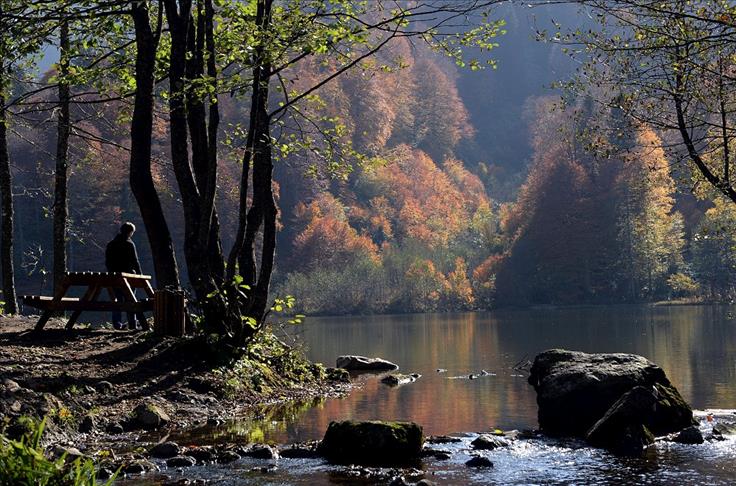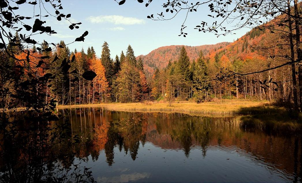 Artvin'in Borçka ilçesindeki Karagöl, sarının onlarca farklı tonuyla birlikte bölgeye gelen yerli ve yabancı turistlerin ziyaretlerinde ilk duraklardan birisi oldu. (Hakan Burak Altunöz - Anadolu Ajansı)Hakan Burak Altunöz