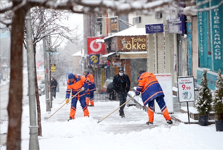 Erzurum'da iki gündür aralıklarla devam eden kar yağışı, kenti beyaz örtüyle kapladı. Büyükşehir Belediyesi karla mücadele ekipleri, cadde ve sokaklarda kar küreme çalışması yürüttü. ( Hilmi Tunahan Karakaya - Anadolu Ajansı )Hilmi Tunahan Karakaya
