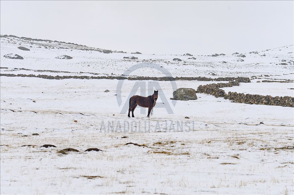 Iğdır'ın yüksek kesimlerindeki köylerde kar yağışının ardından soğuk hava etkili oluyor. Kar yağışıyla beyaza bürünen Ağrı Dağı ve dağ köylerinde güzel manzaralar oluştu. Vatandaşlar, hayvanlarının yem ve bakım işlerini yapıyor. ( Hüseyin Yıldız - Anadolu Ajansı )Hüseyin Yıldız