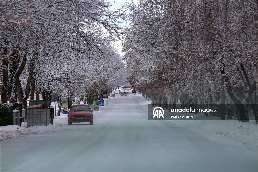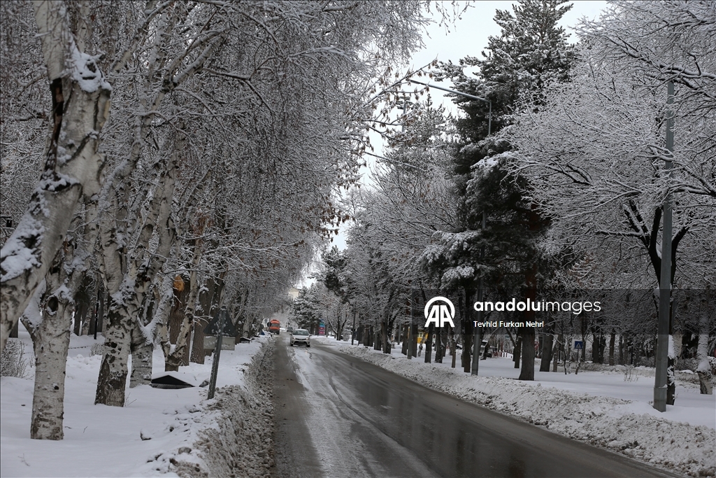 Erzurum'da gece saatlerinde başlayan kar etkili oldu. Kentte ağaçlar ve sokaklar beyaza büründü. ( Tevhid Furkan Nehri - Anadolu Ajansı )Tevhid Furkan Nehri