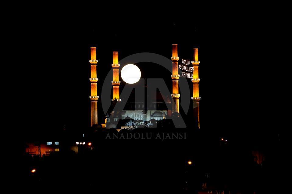 Mimar Sinan'ın ustalık eseri Selimiye Camisi ile dolunay güzel görüntü oluşturdu. ( Salih Baran - Anadolu Ajansı )Salih Baran