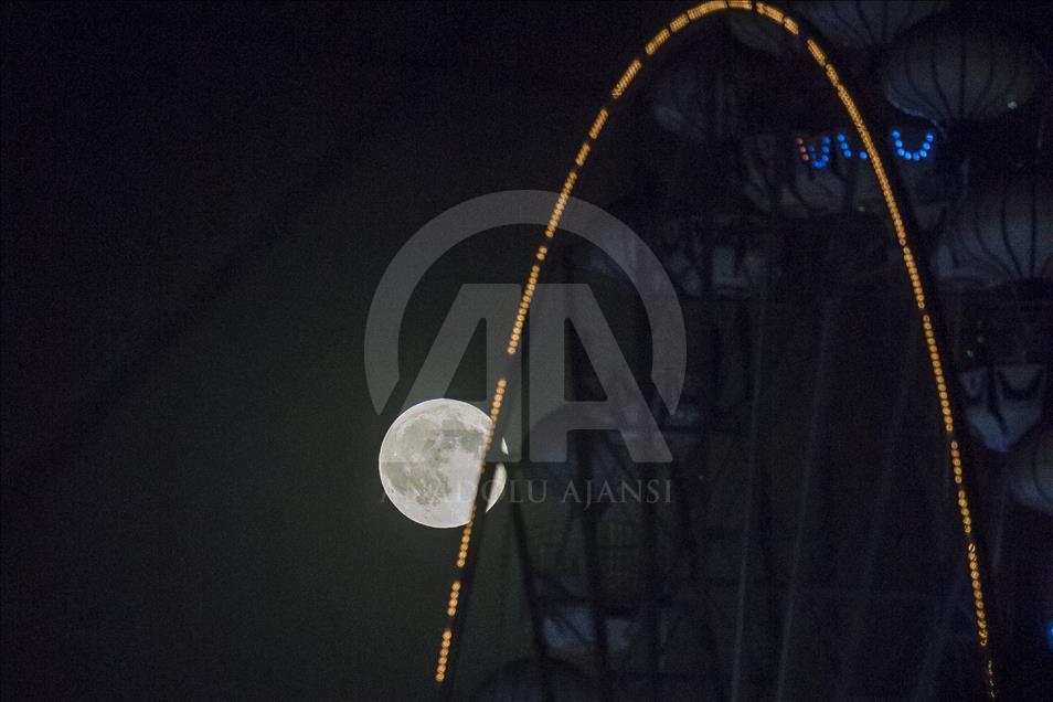 Başkentte dolunay ve Gençlik Parkı'nda bulunan dönme dolap, güzel görüntü oluşturdu. ( Mustafa Kamacı - Anadolu Ajansı )Mustafa Kamacı