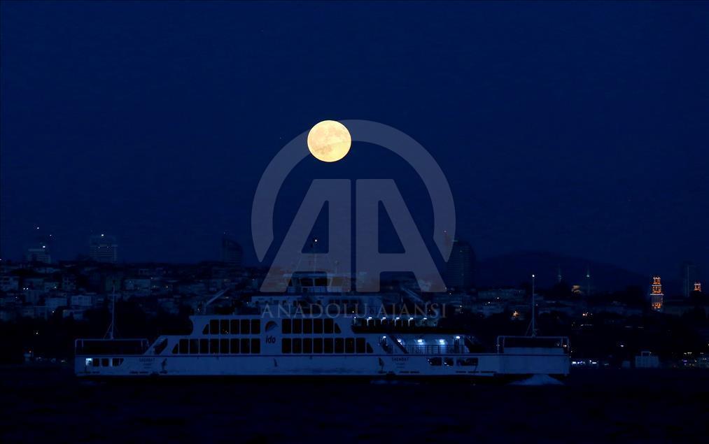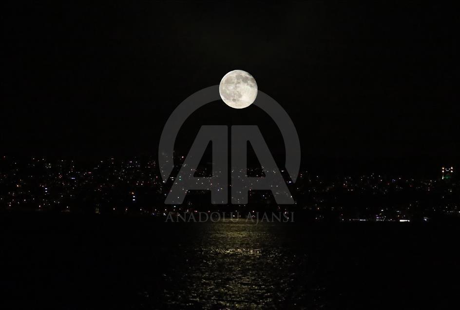 İstanbul semalarında ortaya çıkan dolunay, büyüklüğü ve parlaklığı ile geceyi aydınlattı. ( Onur Çoban - Anadolu Ajansı )Onur Çoban