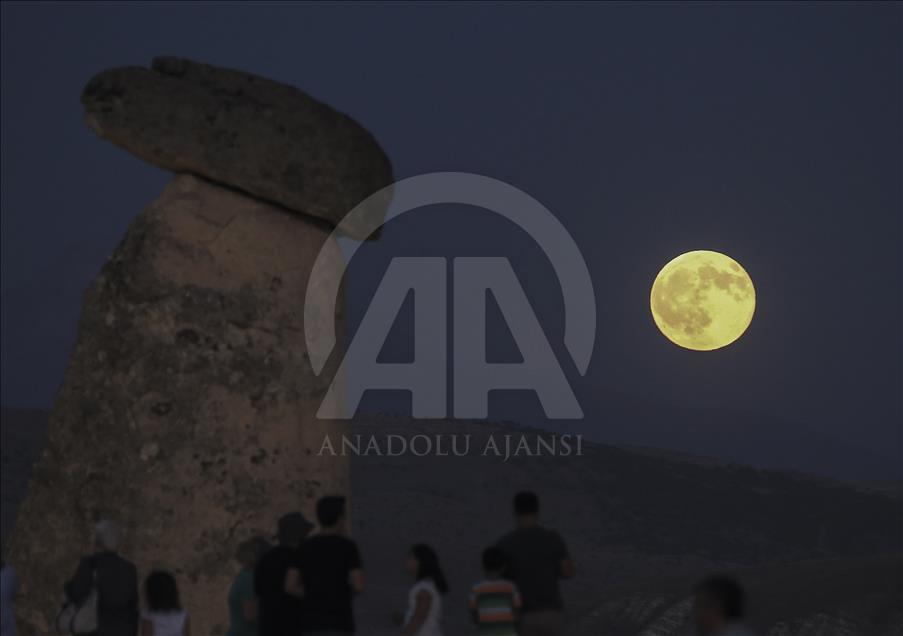 Kapadokya'daki peri bacaları ve dolunay güzel bir manzara oluşturdu. ( İsmail DURU - Anadolu Ajansı )İsmail DURU