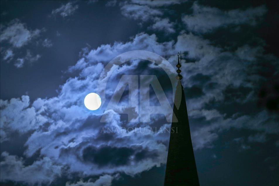 Van semalarında görülen dolunayın, bulutların arasında bir minare ile bütünleşmesi güzel görüntü oluşturdu. ( Özkan Bilgin - Anadolu Ajansı )Özkan Bilgin