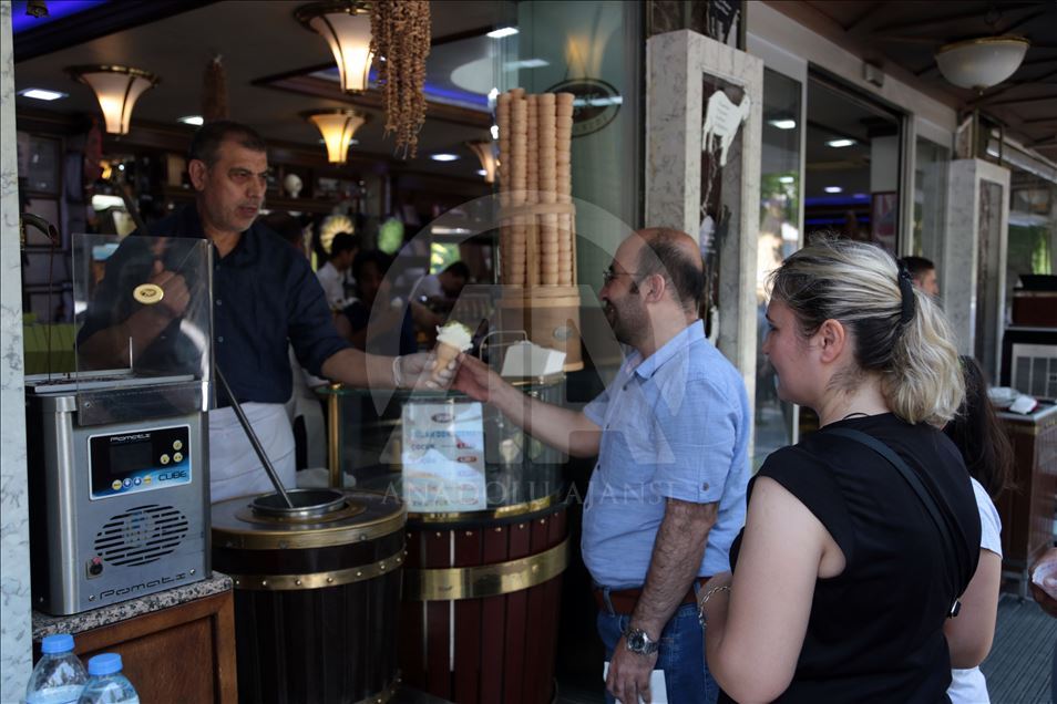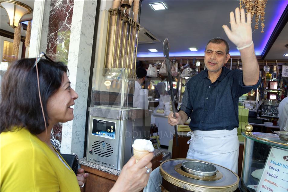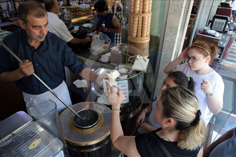 Türkiye'nin dört bir yanından turistler, keçi sütü ve salebin ustaların ellerinde benzersiz bir lezzete ulaşmasıyla ortaya çıkan, Çin'den Güney Afrika'ya, ABD'den Maldivler'e kadar birçok ülkeye ihraç edilen Maraş dondurmasını tatmak için Kahramanmaraş'a akın ediyor. ( İsmail Hakkı Demir - Anadolu Ajansı )İsmail Hakkı Demir
