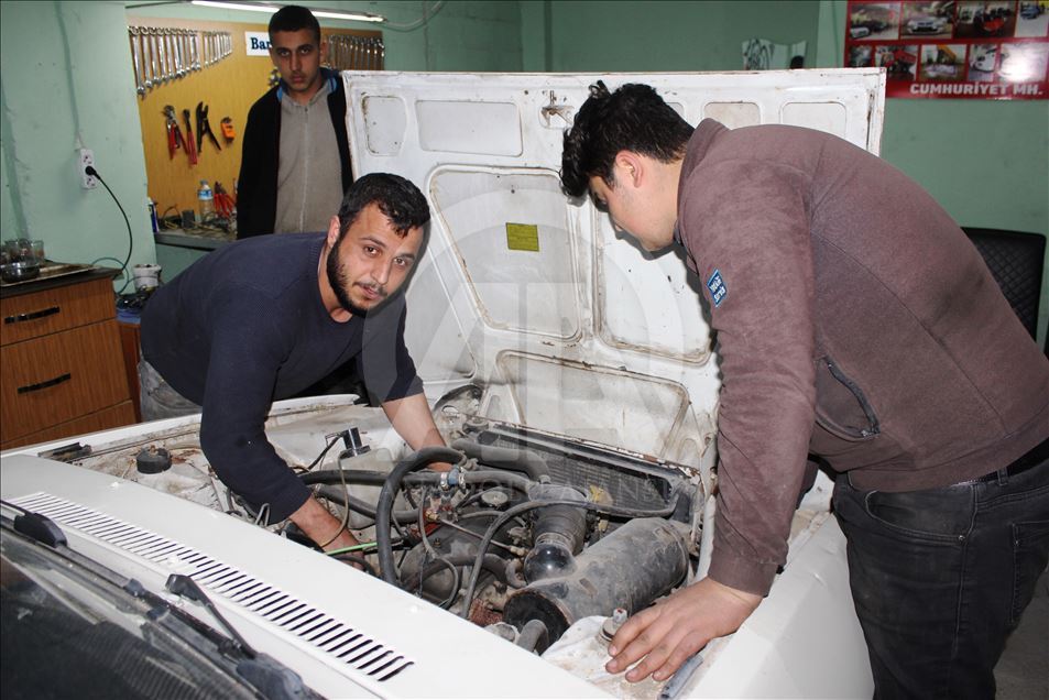 Osmaniye'de 14 Nisan'daki düğün için hazırlık yapan damat adayı Mami Emen (solda), arkadaşı Sefa Kındır (sağda) ile 1978 model otomobili ikiye bölüp demir profille uzatarak limuzine dönüştürdü. ( Ümit Kahrıman - Anadolu Ajansı )Ümit Kahrıman