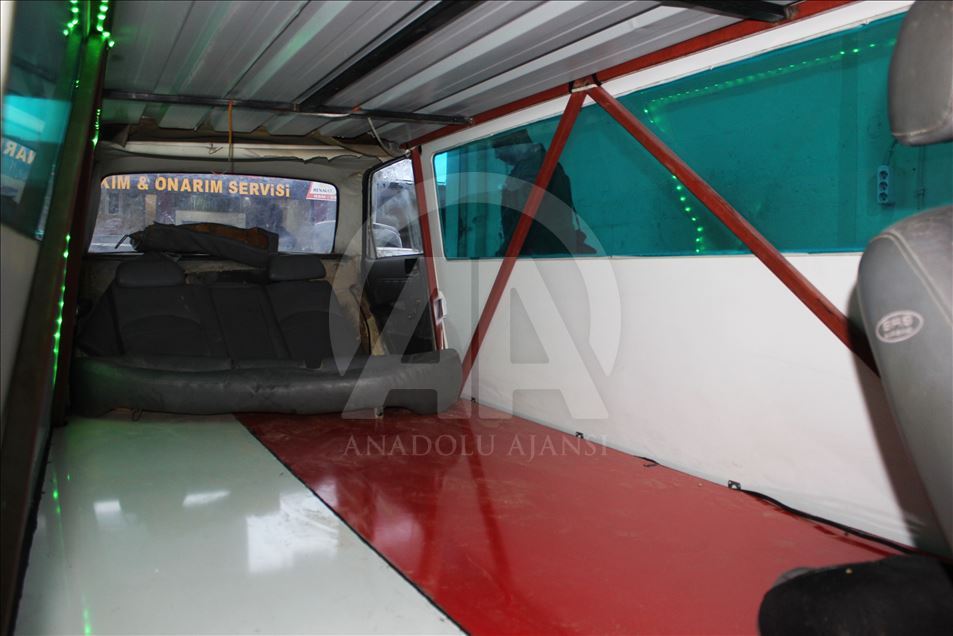 Osmaniye'de 14 Nisan'daki düğün için hazırlık yapan damat adayı Mami Emen, arkadaşı Sefa Kındır ile 1978 model otomobili ikiye bölüp demir profille uzatarak limuzine dönüştürdü. ( Ümit Kahrıman - Anadolu Ajansı )Ümit Kahrıman