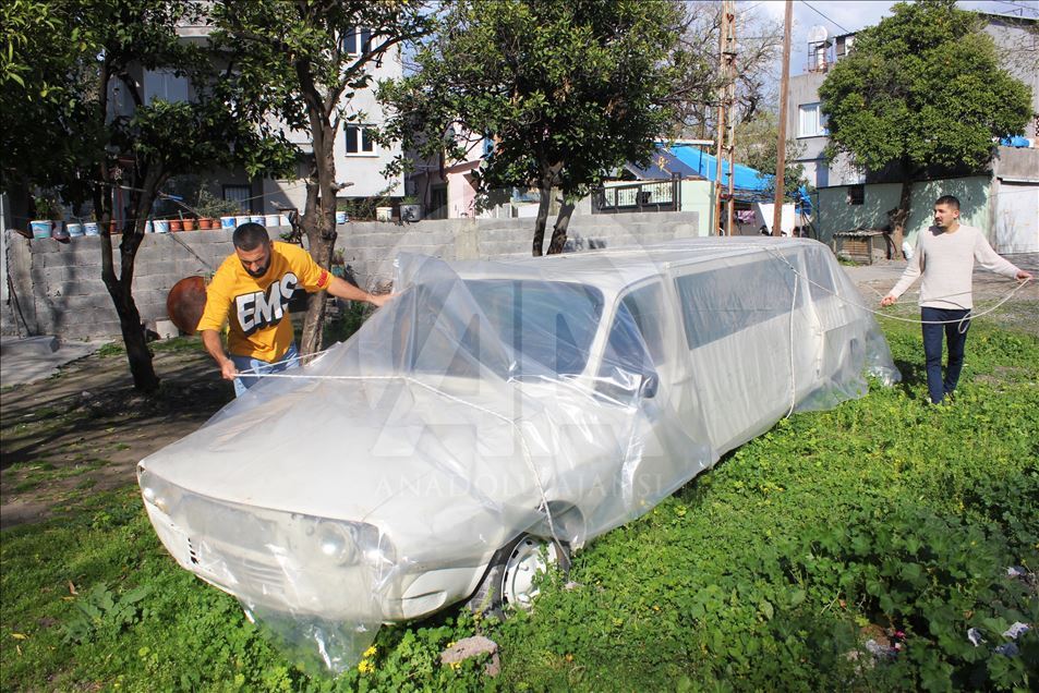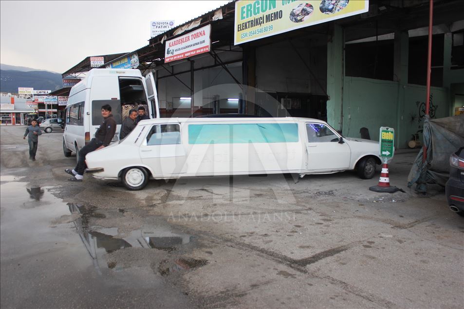 Osmaniye'de 14 Nisan'daki düğün için hazırlık yapan damat adayı Mami Emen, arkadaşı Sefa Kındır ile 1978 model otomobili ikiye bölüp demir profille uzatarak limuzine dönüştürdü.