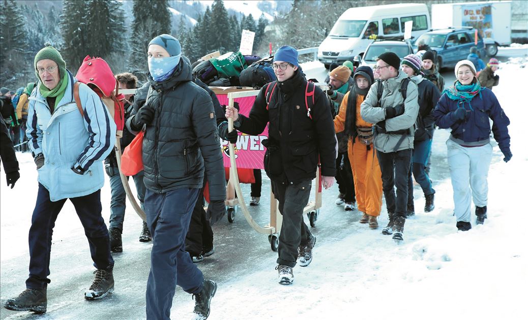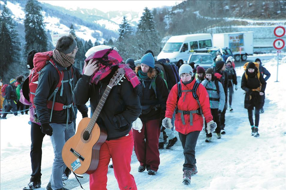 İsviçre'nin Davos kasabasında yarın başlayacak 50. Dünya Ekonomik Forumu'nda (WEF) sıkı güvenlik önlemleri ve protestolar dikkati çekiyor. Davos'a 20 kilometre uzaklıktaki otoyolda WEF'i protesto için İsviçre'nin farklı kentlerinden gelen eylemciler renkli görüntüler oluşturdu. ( Dursun Aydemir - Anadolu Ajansı )Dursun Aydemir