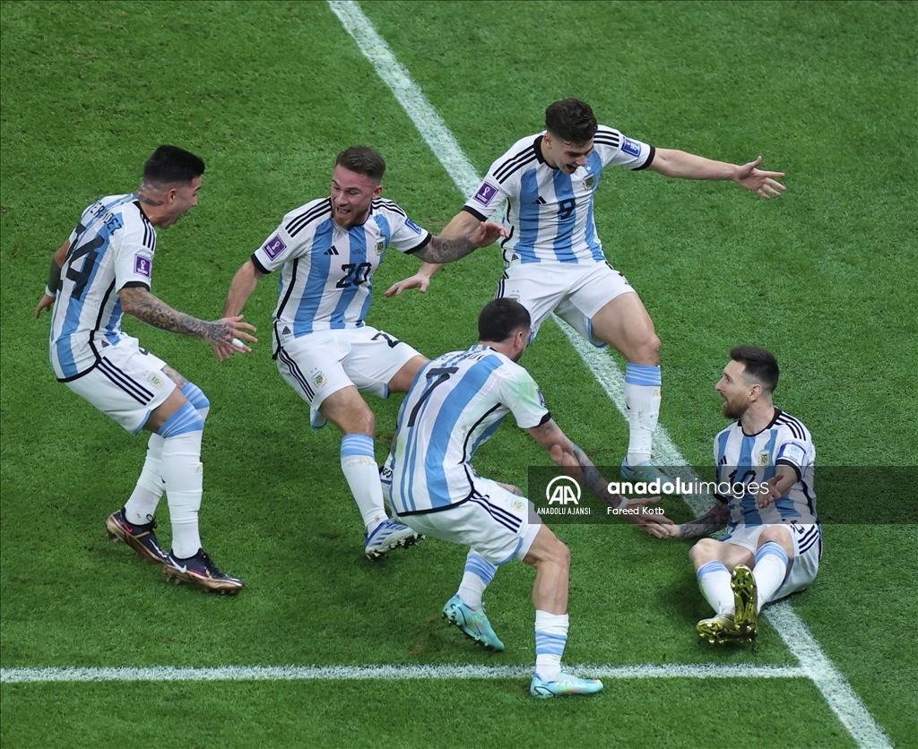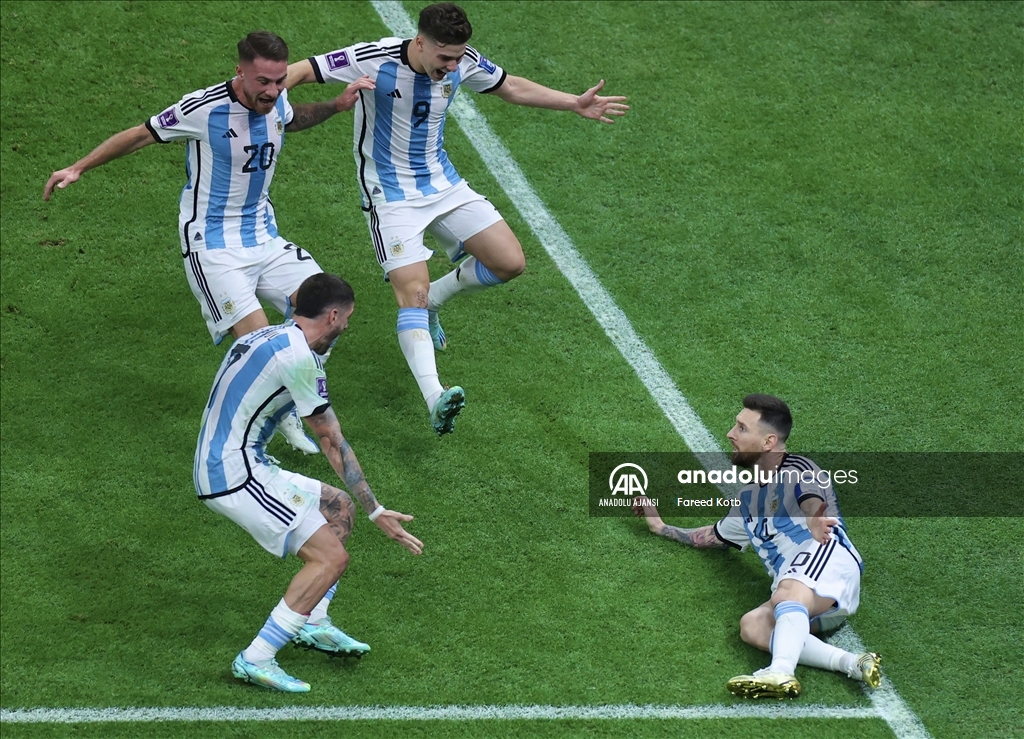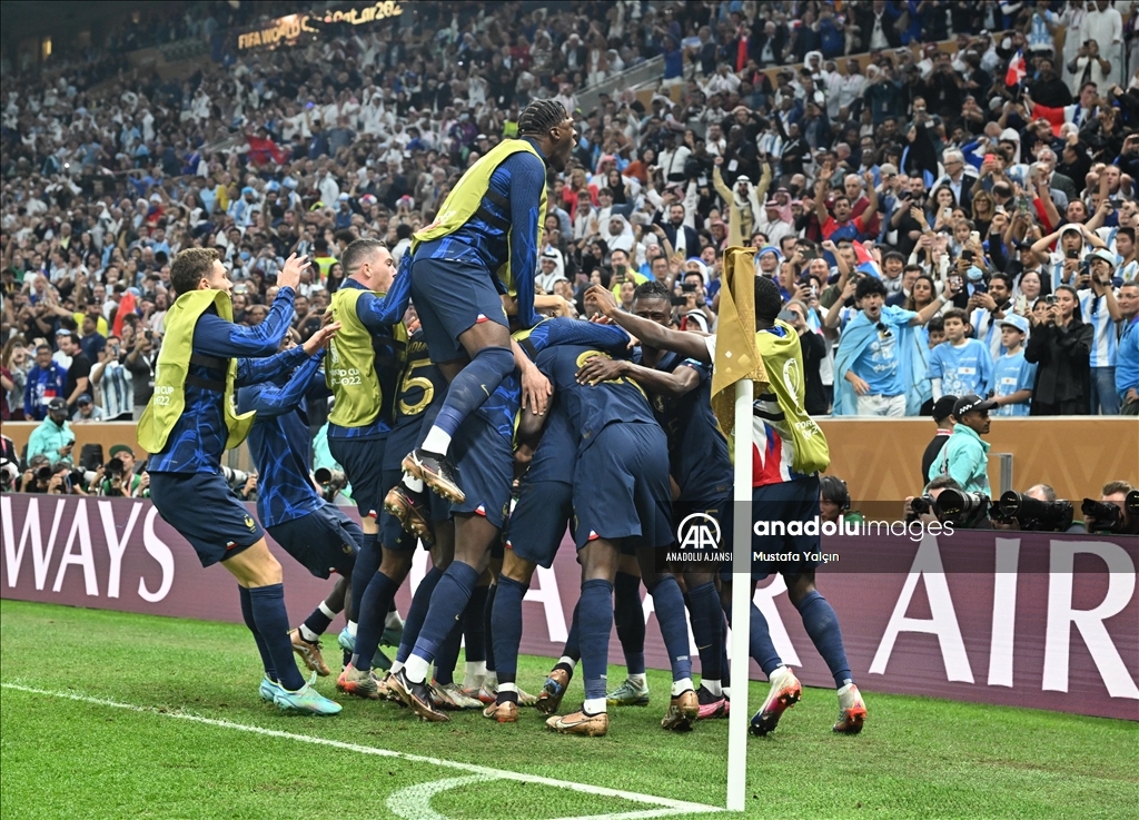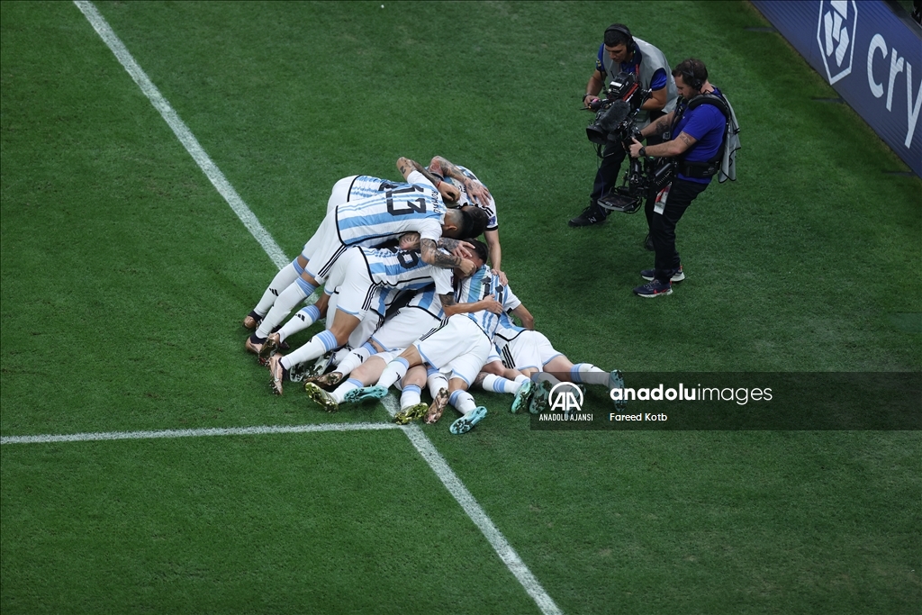 Katar'ın ev sahipliğinde düzenlenen 2022 FIFA Dünya Kupası final maçında Arjantin ile Fransa, Lusail Stadyumu'nda karşılaştı. Arjantin takımı oyuncuları gol sevinci yaşadı. ( Erçin Ertürk - Anadolu Ajansı )Erçin Ertürk