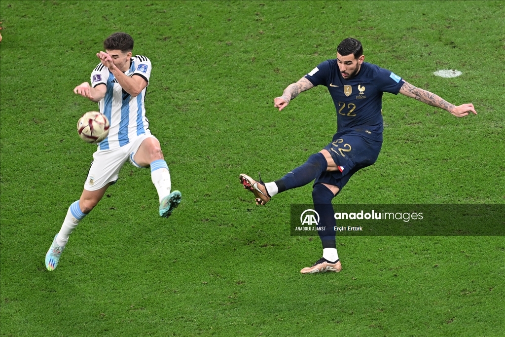 Katar'ın ev sahipliğinde düzenlenen 2022 FIFA Dünya Kupası final maçında Arjantin ile Fransa, Lusail Stadyumu'nda karşılaştı. Bir pozisyonda Fransa takımı oyuncusu Theo Hernandez (22) rakibi ile mücadele etti. ( Erçin Ertürk - Anadolu Ajansı )Erçin Ertürk