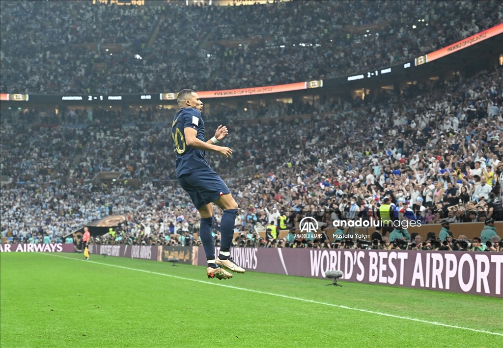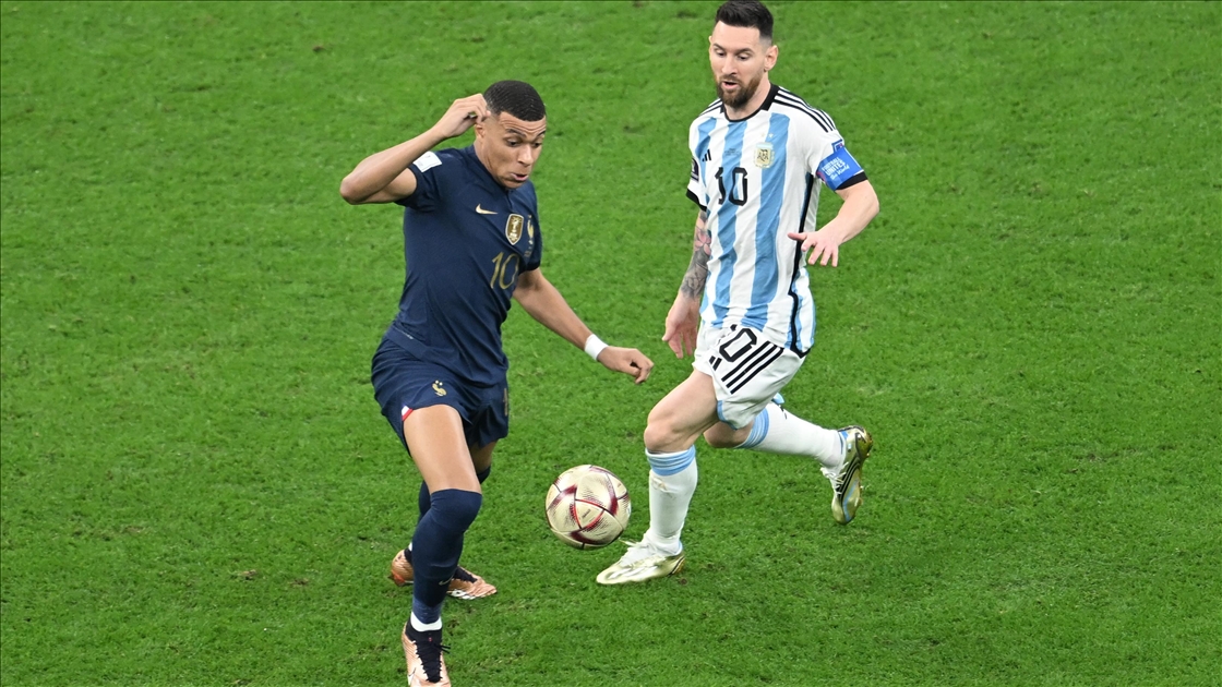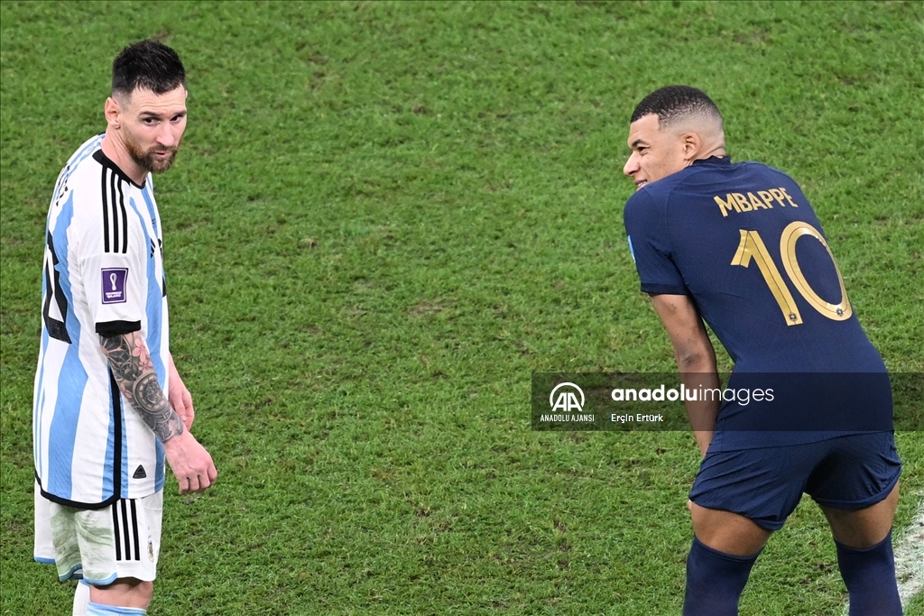 Katar'ın ev sahipliğinde düzenlenen 2022 FIFA Dünya Kupası final maçında Arjantin ile Fransa, Lusail Stadyumu'nda karşılaştı. Maçta Fransa takımı oyuncusu Kylian Mbappe (10) ve Arjantin takımı oyuncusu Lionel Messi (10) de forma giydi. ( Erçin Ertürk - Anadolu Ajansı )Erçin Ertürk