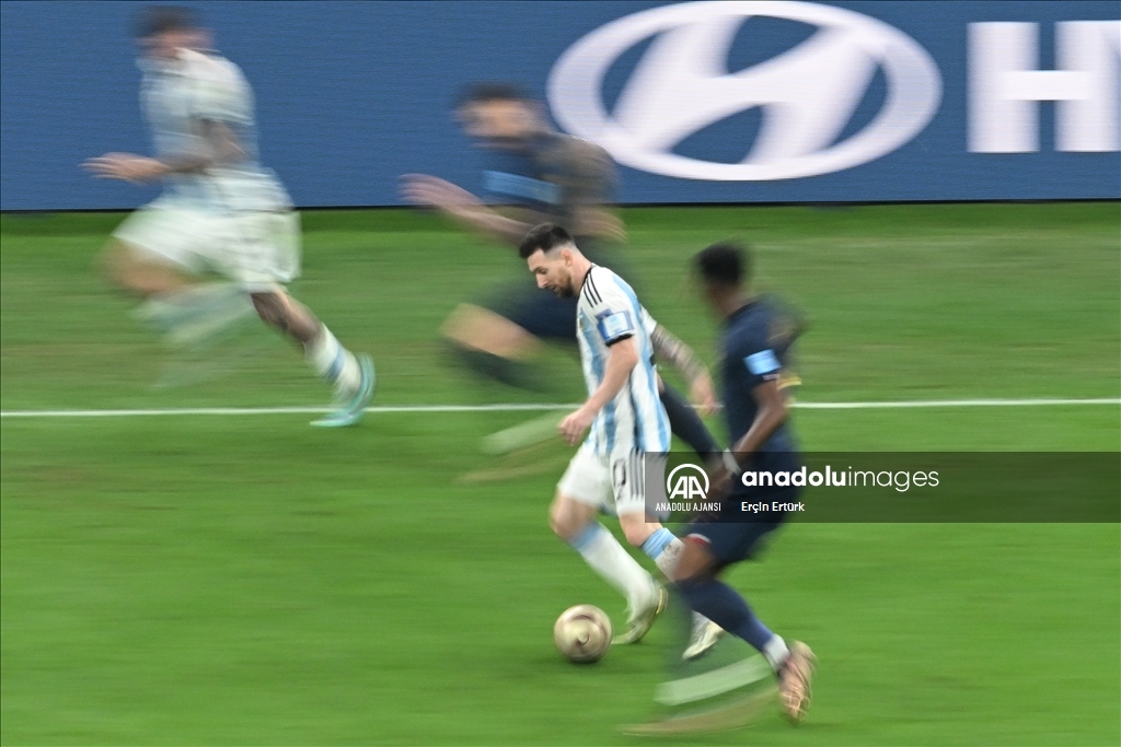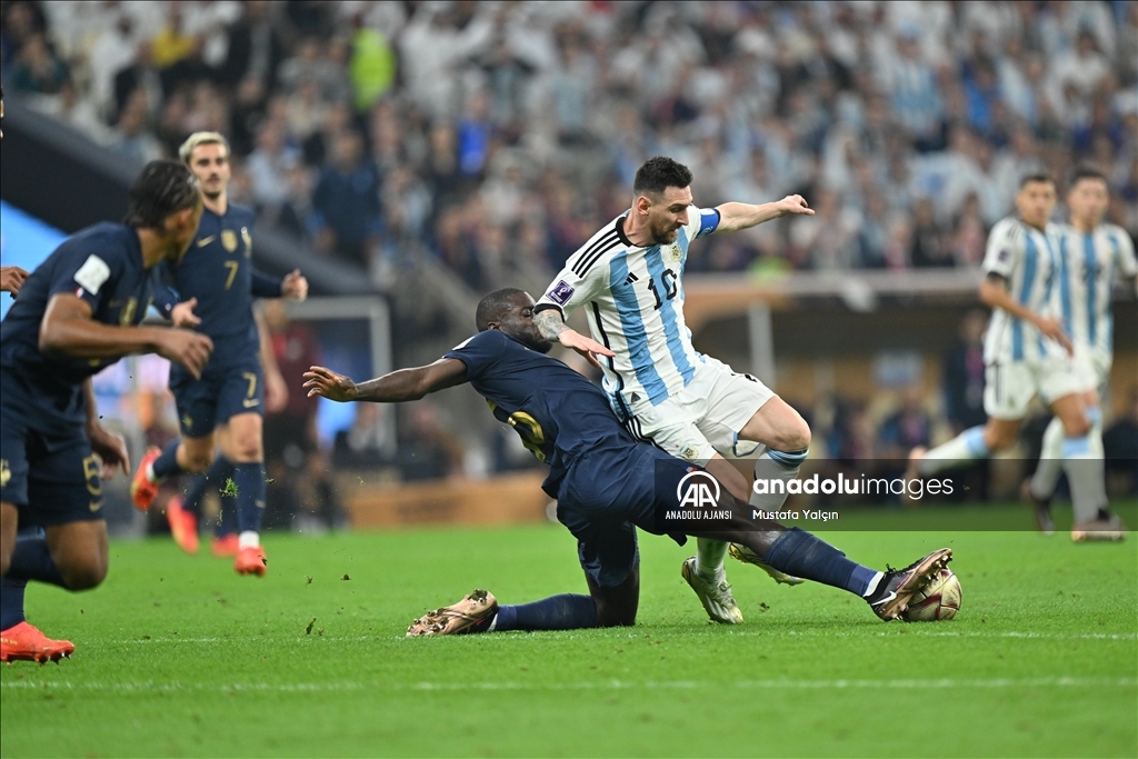 Katar'ın ev sahipliğinde düzenlenen 2022 FIFA Dünya Kupası final maçında Arjantin ile Fransa, Lusail Stadyumu'nda karşılaştı. Bir pozisyonda Arjantin takımı oyuncusu Lionel Messi (sağ 2) rakibi ile mücadele etti. ( Erçin Ertürk - Anadolu Ajansı )Erçin Ertürk