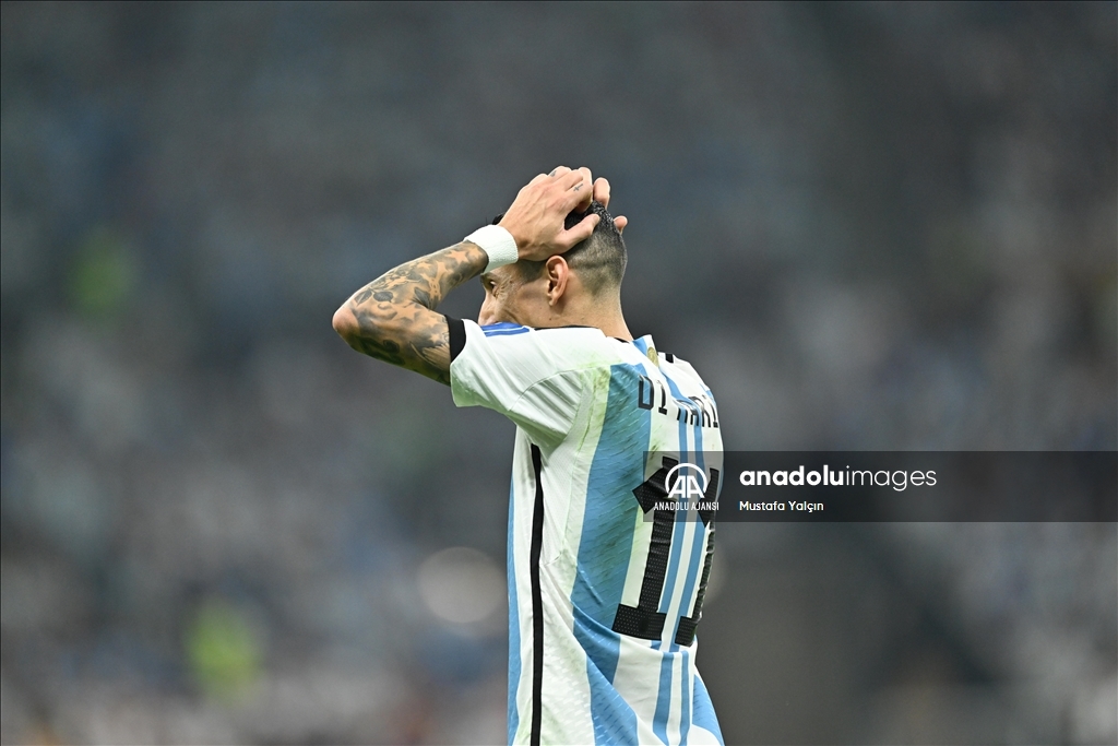 Katar'ın ev sahipliğinde düzenlenen 2022 FIFA Dünya Kupası final maçında Arjantin ile Fransa, Lusail Stadyumu'nda karşılaştı. Arjantin takımı oyuncusu Angel Di Maria, bir pozisyon sonrası üzüntü yaşadı. ( Mustafa Yalçın - Anadolu Ajansı )Mustafa Yalçın