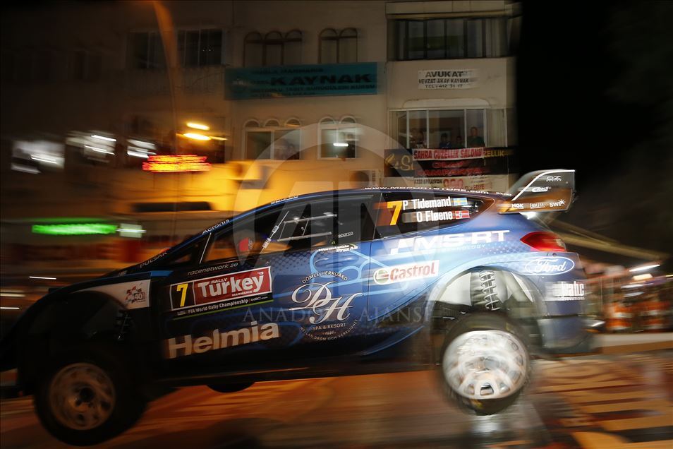 Muğla'nın Marmaris ilçesinde düzenlenen Dünya Ralli Şampiyonası'nın (WRC) 11. ayağı Türkiye Rallisi'nde seyirci özel etabı gerçekleştirildi. Toplam 22 ülkeden 54 otomobil ve 108 sporcunun katıldığı organizasyonda, şehir içi seyirci özel etabında pilotlar sürüşlerini tamamladı. Etapta, M-Sport Ford World Rally takımından takımından İsveçli pilot Pontus Tidemand ve Norveçli pilot Ola Floene de yer aldı. ( Mustafa Çiftçi - Anadolu Ajansı )Mustafa Çiftçi