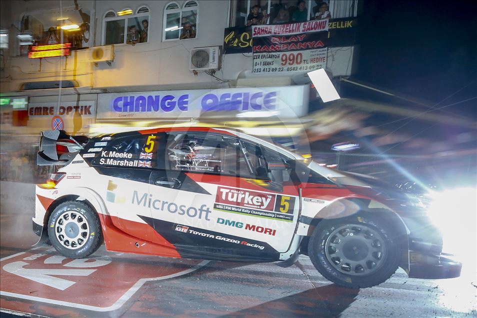 Muğla'nın Marmaris ilçesinde düzenlenen Dünya Ralli Şampiyonası'nın (WRC) 11. ayağı Türkiye Rallisi'nde seyirci özel etabı gerçekleştirildi. Toplam 22 ülkeden 54 otomobil ve 108 sporcunun katıldığı organizasyonda, şehir içi seyirci özel etabında pilotlar sürüşlerini tamamladı. Etapta, Toyota Gazoo Racing takımından takımından İngiliz pilotlar Kris Meeke ve Sebastian Marshall da yer aldı. ( Mustafa Çiftçi - Anadolu Ajansı )Mustafa Çiftçi