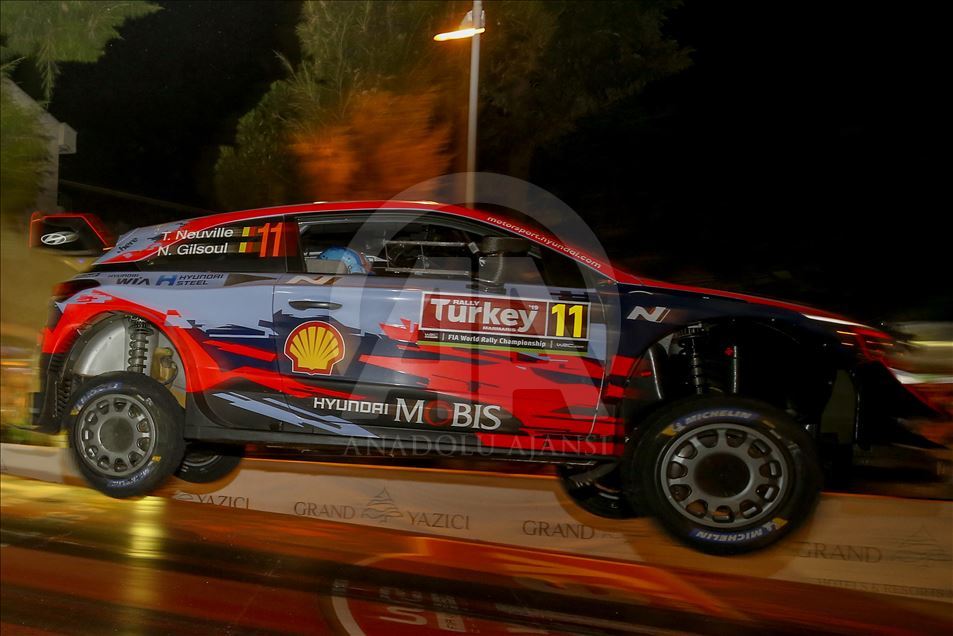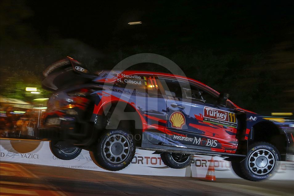 Muğla'nın Marmaris ilçesinde düzenlenen Dünya Ralli Şampiyonası'nın (WRC) 11. ayağı Türkiye Rallisi'nde seyirci özel etabı gerçekleştirildi. Toplam 22 ülkeden 54 otomobil ve 108 sporcunun katıldığı organizasyonda, şehir içi seyirci özel etabında pilotlar sürüşlerini tamamladı. Etapta, Hyundai Shell Mobis World takımından Belçikalı pilotlar Thierry Neuville ve Nicolas Gilsoul da yer aldı. ( Mustafa Çiftçi - Anadolu Ajansı )Mustafa Çiftçi