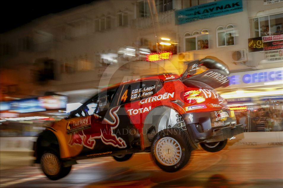 Muğla'nın Marmaris ilçesinde düzenlenen Dünya Ralli Şampiyonası'nın (WRC) 11. ayağı Türkiye Rallisi'nde seyirci özel etabı gerçekleştirildi. Toplam 22 ülkeden 54 otomobil ve 108 sporcunun katıldığı organizasyonda, şehir içi seyirci özel etabında pilotlar sürüşlerini tamamladı. Etapta, Citroen World Rally takımından Finlandiyalı pilotlar Esapekka Lappi ve Janne Ferm de yer aldı. ( Mustafa Çiftçi - Anadolu Ajansı )Mustafa Çiftçi