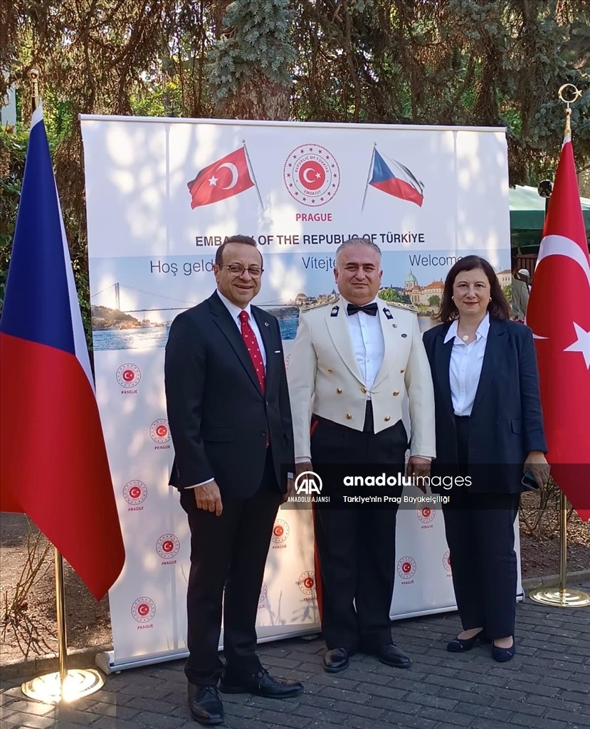 Türkiye’nin Prag Büyükelçiliğinde, 30 Ağustos Zafer Bayramı’nın 102’nci yılı ve Türk Silahlı Kuvvetleri Günü vesilesiyle kutlama programı düzenlendi. Programa, Türkiye’nin Prag Büyükelçisi Egemen Bağış (solda) ve Ataşe Albay Cem Tekin (sağda) katıldı. (Türkiye'nin Prag Büyükelçiliği - Anadolu Ajansı)Türkiye'nin Prag Büyükelçiliği