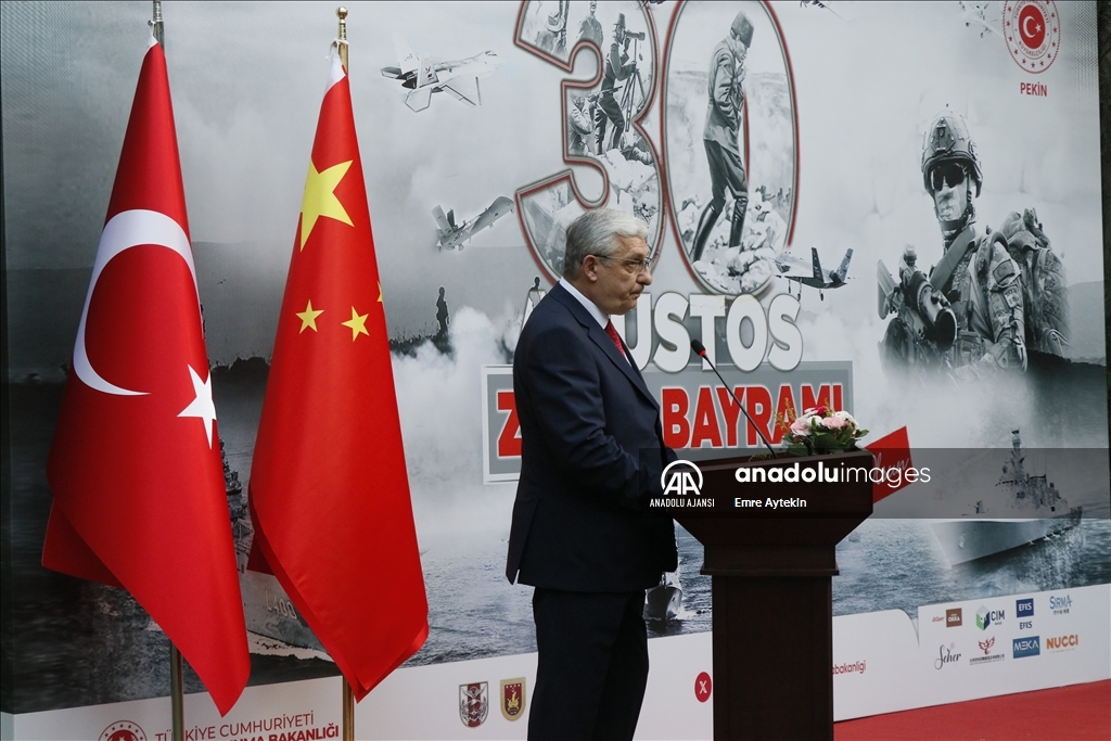 Çin'in başkenti Pekin'de, 30 Ağustos Zafer Bayramı ve Türk Silahlı Kuvvetler Günü dolayısıyla resepsiyon düzenlendi. Türkiye'nin Pekin Büyükelçisi İsmail Hakkı Musa ve Askeri Ataşesi Albay Kaan Gülerce'nin ev sahipliğinde büyükelçilik rezidansında gerçekleşen resepsiyona, Çin Halk Cumhuriyeti'ni temsilen Tümgeneral Li Yongşi'nin (solda) yanı sıra farklı ülkelerden çok sayıda diplomat ve askeri ataşe katıldı. (Emre Aytekin - Anadolu Ajansı)Emre Aytekin